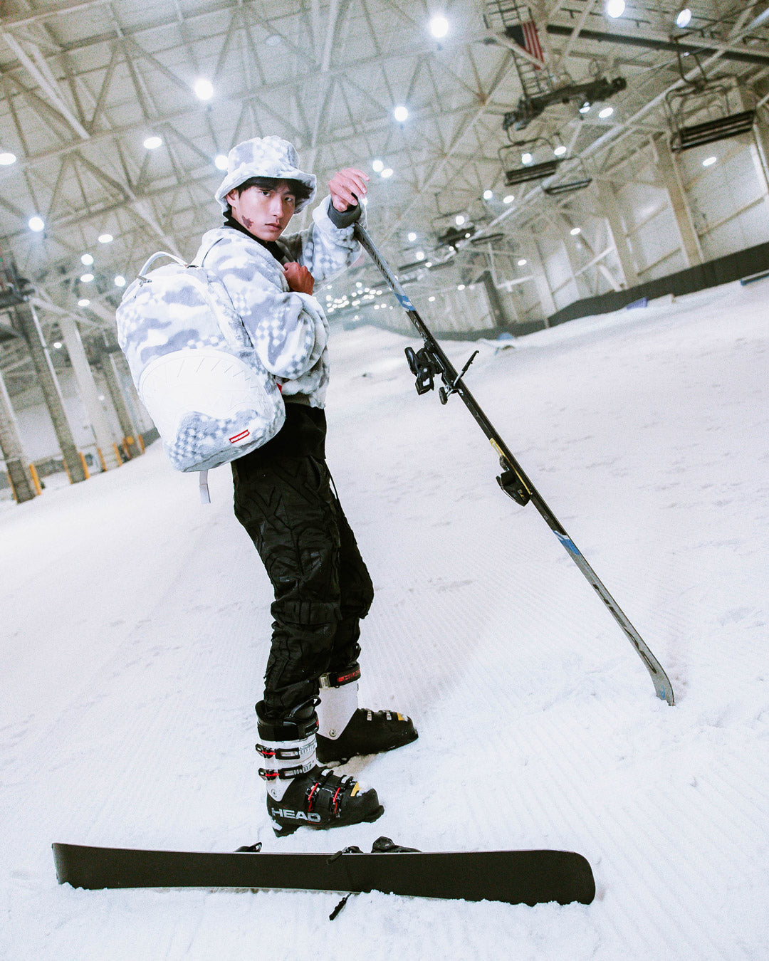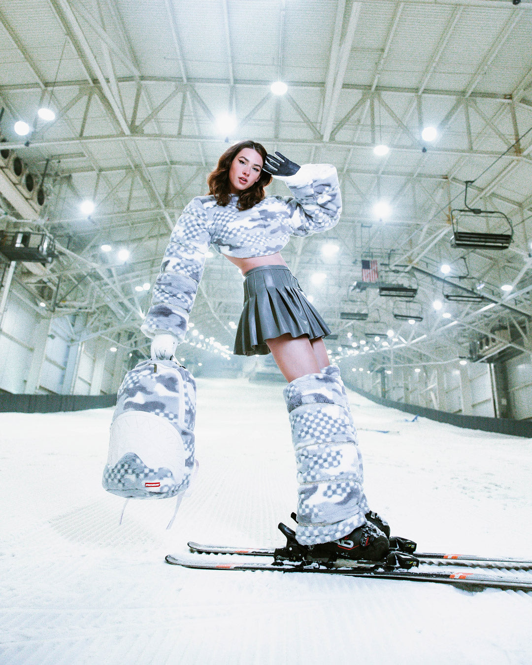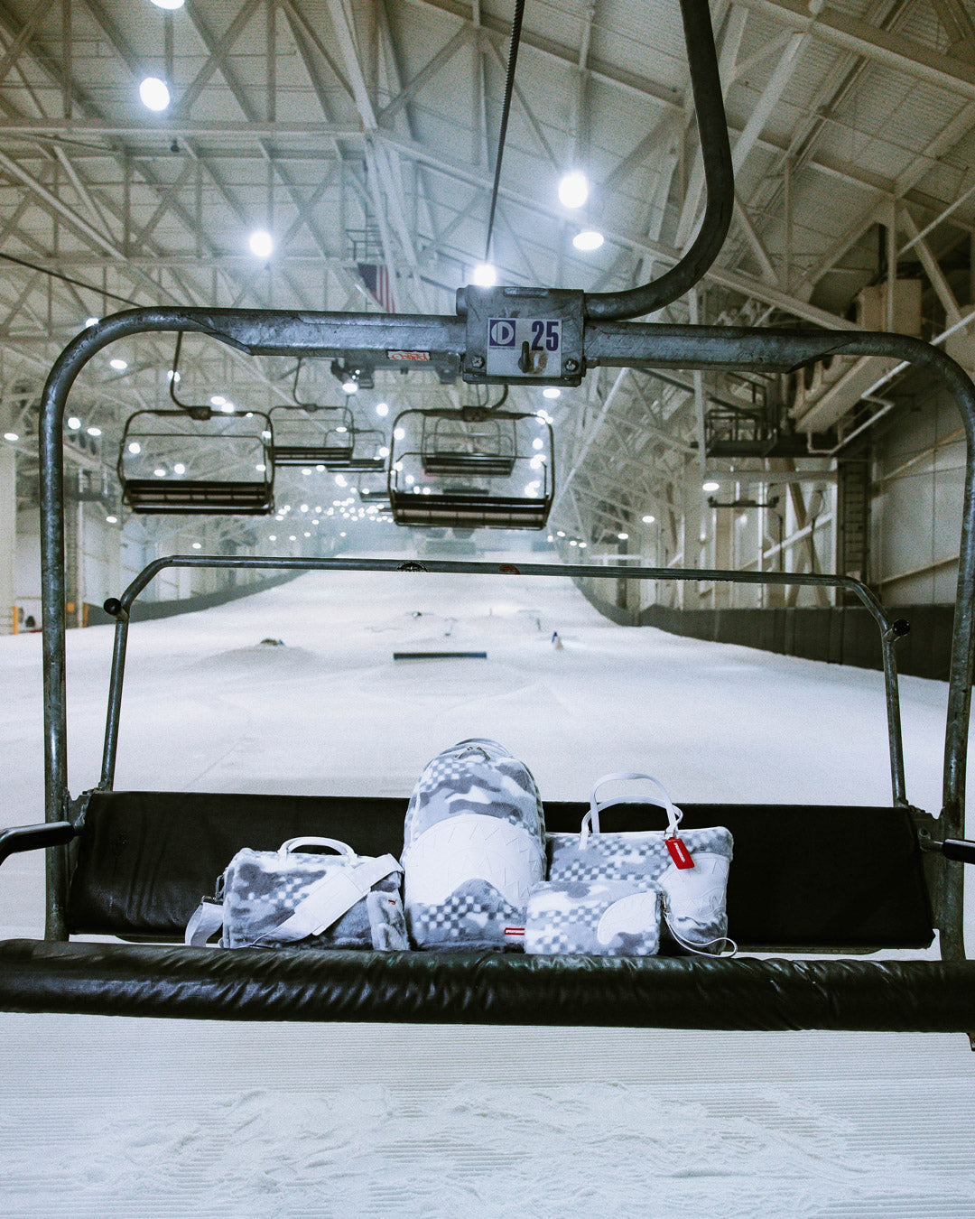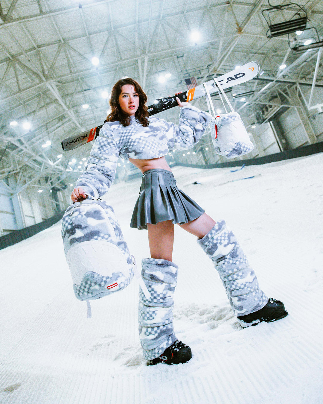 Dimensions: 18' x 6' x 11.5' • Front zipper pocket • Side pockets • Zippered Stash pocket • Separate velour sunglass compartment • Ergonomic mesh back padding • Adjustable Straps for custom sizing • Gold zippers with metal hardware • Metal 'Sprayground Authentic' badge • Slide through back sleeve connects to carry-on luggage to free your hands