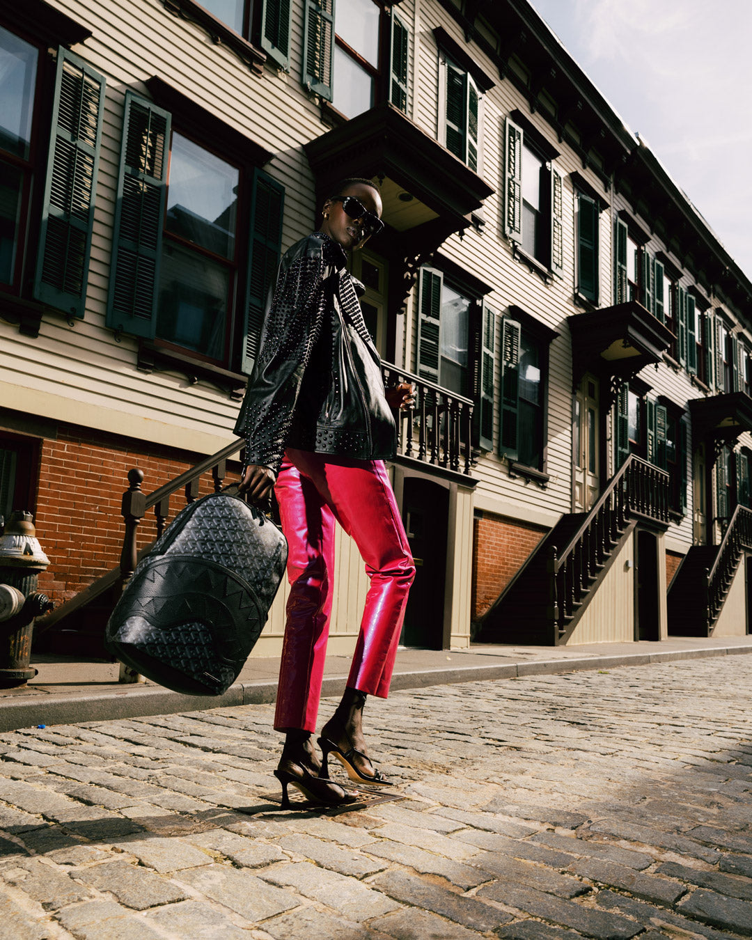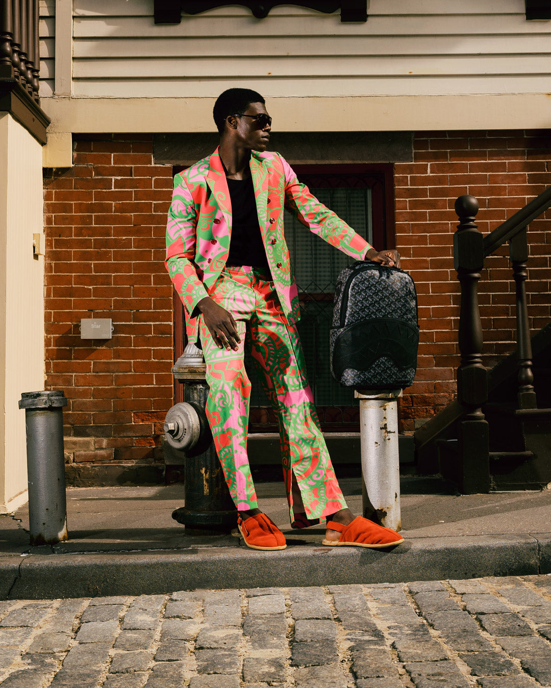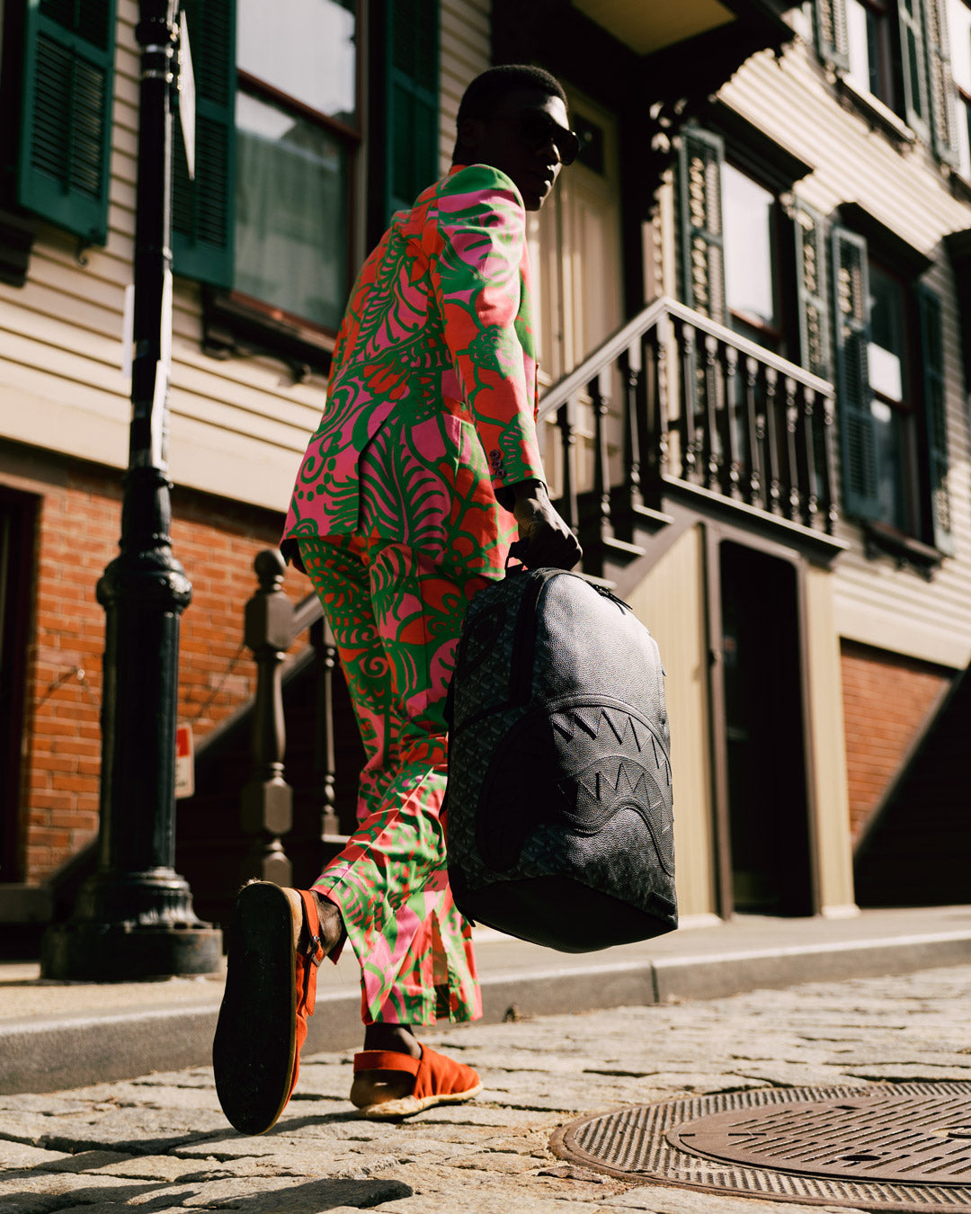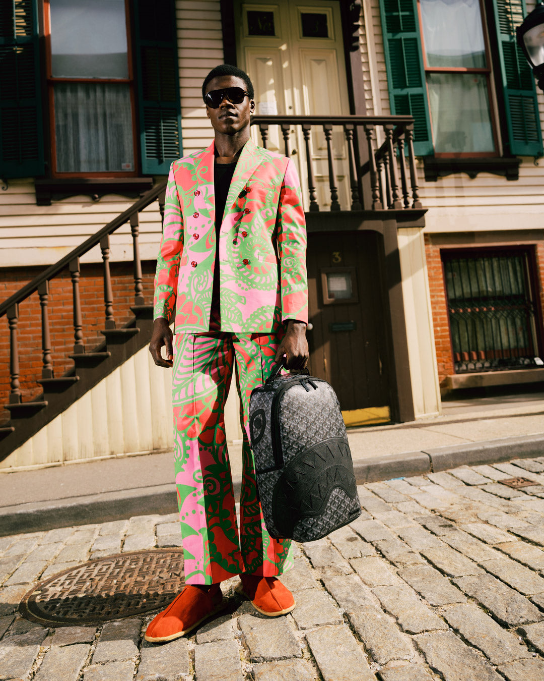 Dimensions: 18' x 6' x 11.5' • Front zipper pocket • Side pockets • Zippered Stash pocket • Separate velour sunglass compartment • Ergonomic mesh back padding • Adjustable Straps for custom sizing • Gold zippers with metal hardware • Metal 'Sprayground Authentic' badge • Slide through back sleeve connects to carry-on luggage to free your hands