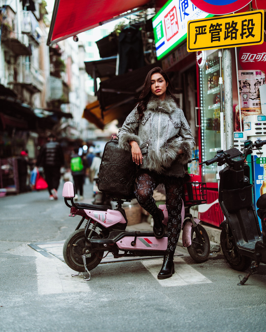 Dimensions: 18' x 6' x 11.5' • Front zipper pocket • Side pockets • Zippered Stash pocket • Separate velour sunglass compartment • Ergonomic mesh back padding • Adjustable Straps for custom sizing • Gold zippers with metal hardware • Metal 'Sprayground Authentic' badge • Slide through back sleeve connects to carry-on luggage to free your hands