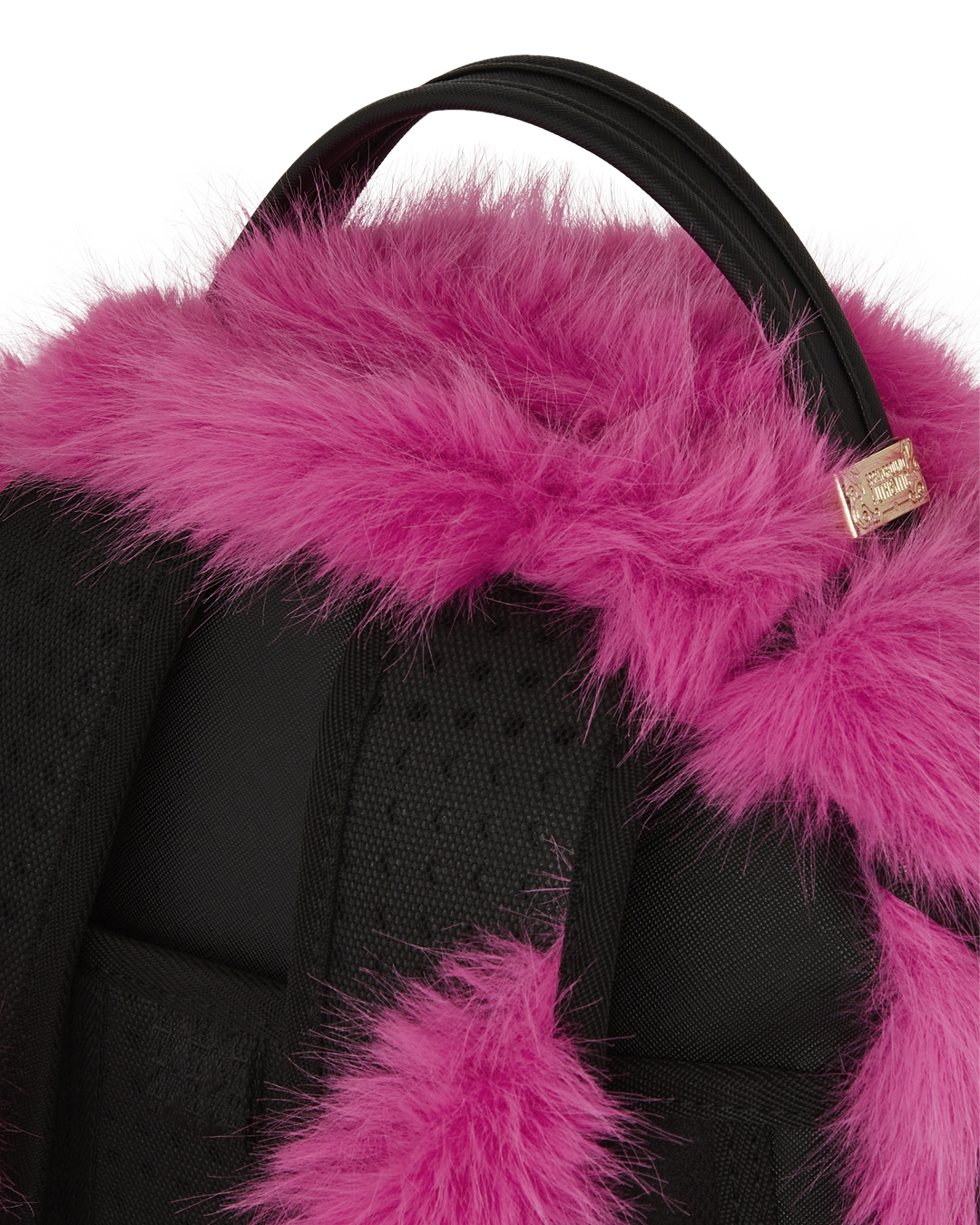 Dimensions: 18' x 6' x 11.5' • Front zipper pocket • Side pockets • Zippered Stash pocket • Separate velour sunglass compartment • Ergonomic mesh back padding • Adjustable Straps for custom sizing • Gold zippers with metal hardware • Metal 'Sprayground Authentic' badge • Slide through back sleeve connects to carry-on luggage to free your hands