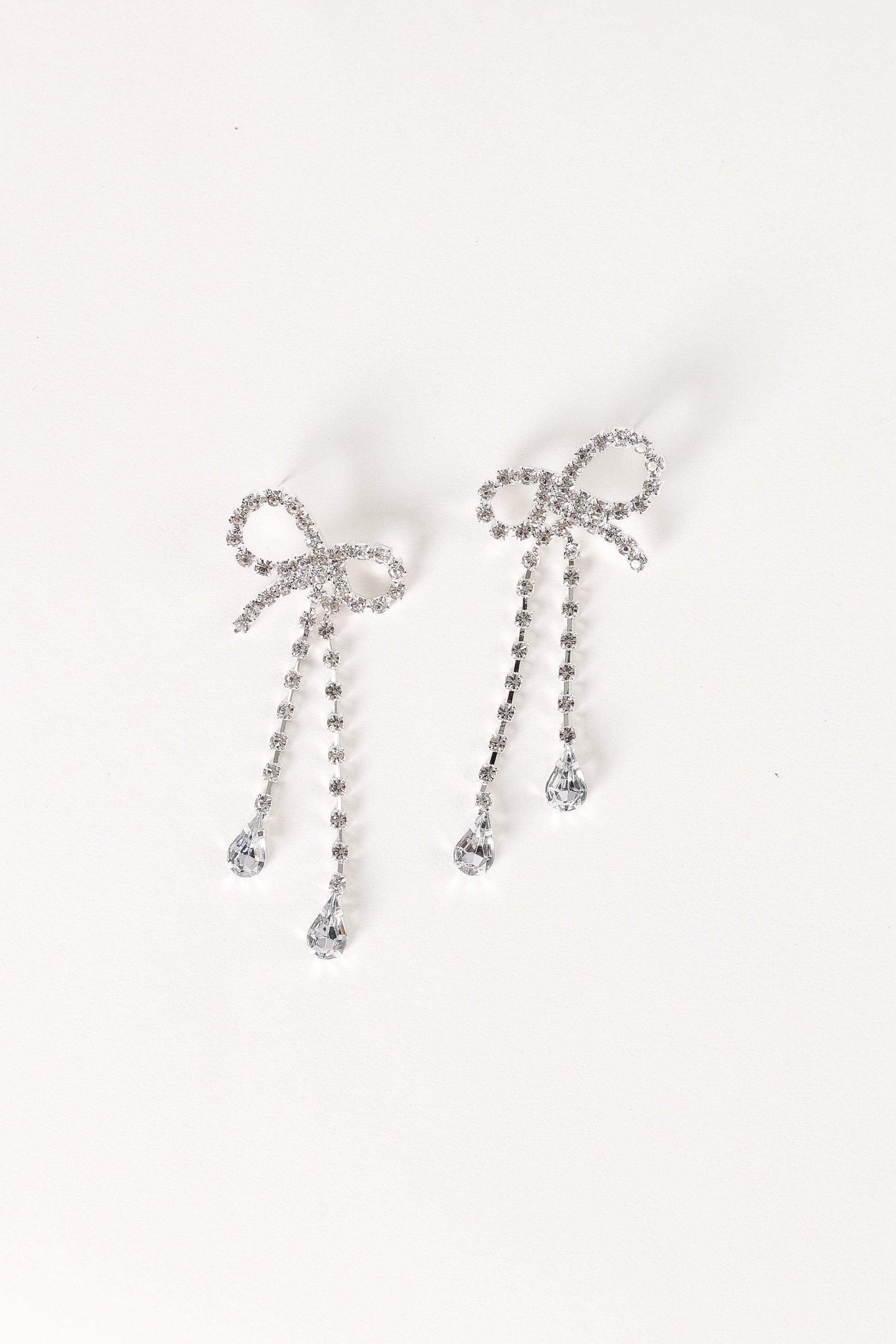 DETAILS Introducing the Ainsley Bow Earrings in a lustrous Silver - the epitome of understated elegance for the contemporary individual. Meticulously crafted with drop style grace, this pair features an intricately embellished bow design that symbolizes both sophistication and simplicity.