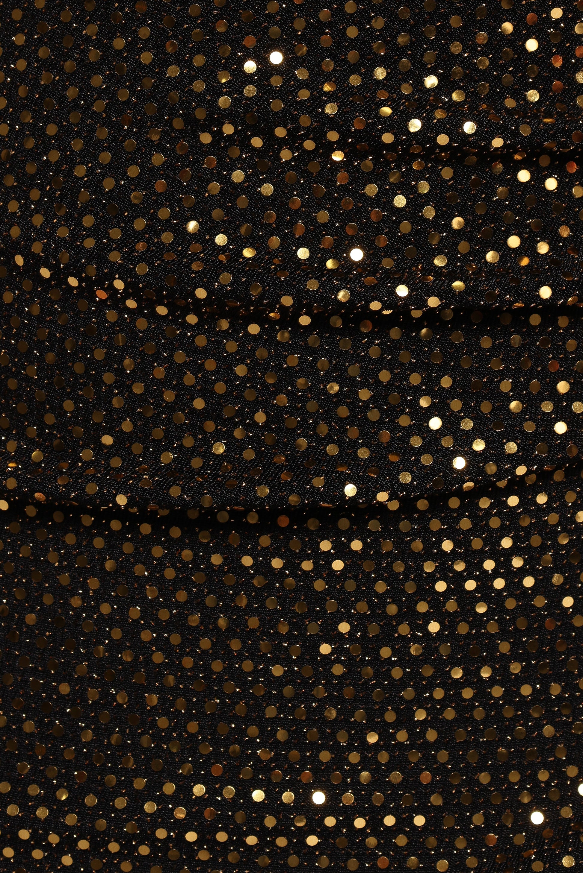 | DETAILS This faux wrap mini dress effortlessly combines sophistication and style with its V neckline and shoulder padding that adds a touch of boldness. The dress is adorned with metallic gold sequins, ensuring you sparkle under any light, making it perfect for those glamorous nights out
