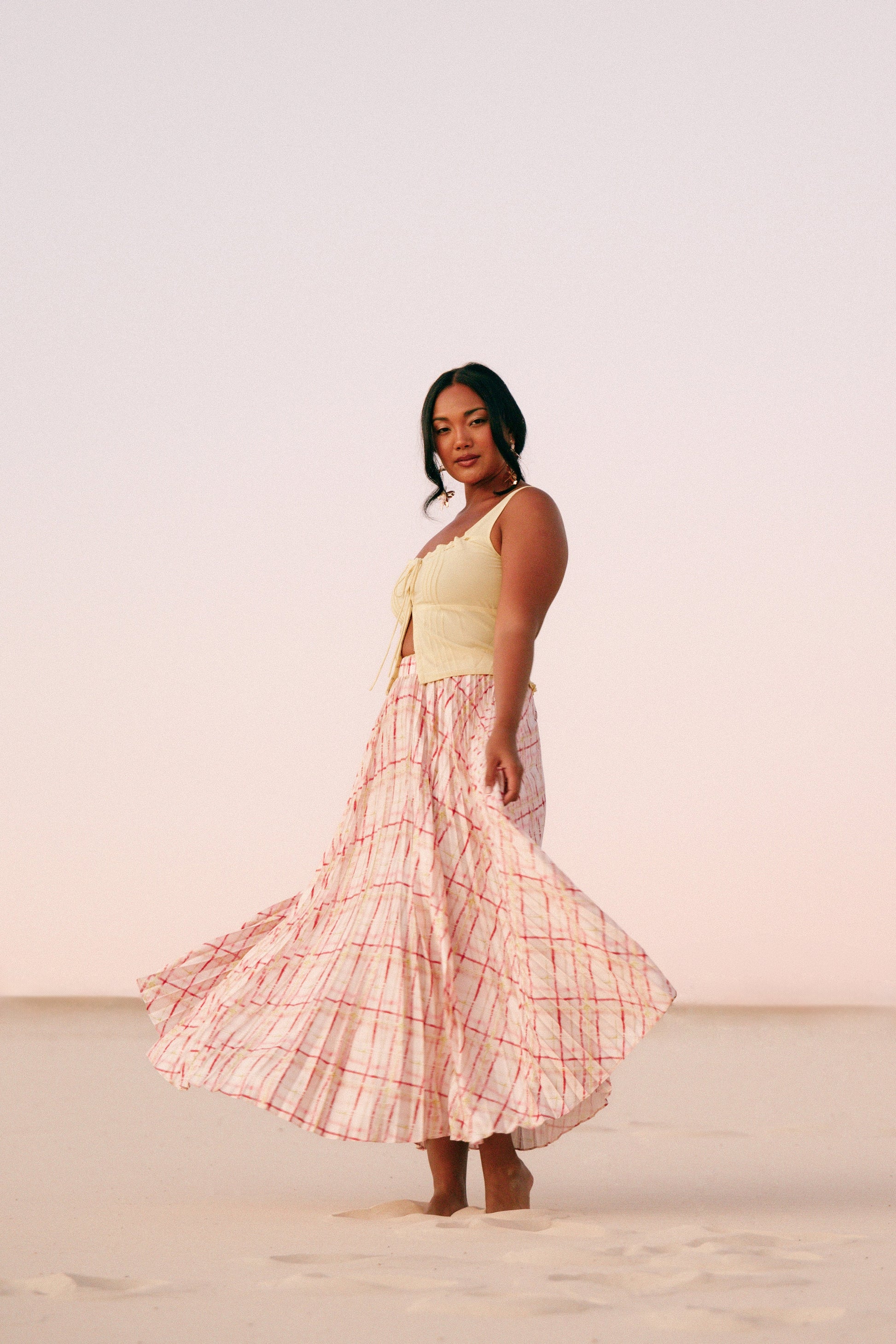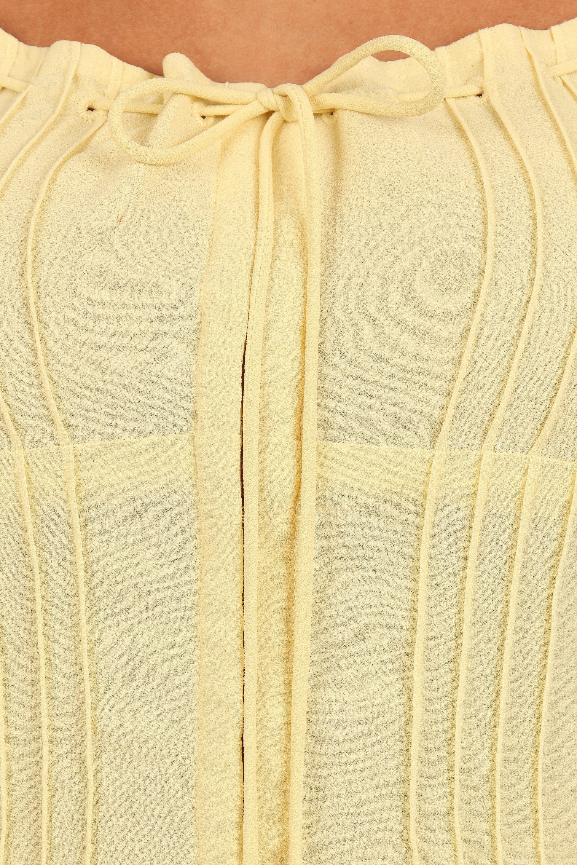DETAILS Let summer days be full of brightness with this cropped length top! The fun, floral print is sure to add an eye-catching statement to your wardrobe. With a round neckline and bust tie detail, you'll be looking cute and comfortable in no time.