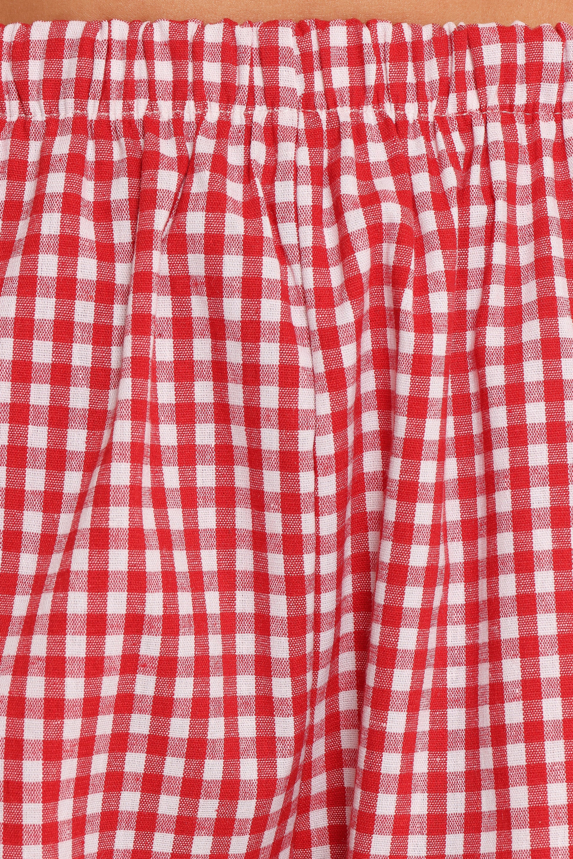 | DETAILS Step into summer with the Amalfi Tee Set - Gingham Mango, your new go-to for effortless style and comfort. The oversized tee drapes elegantly with its round neckline and short sleeves, showcasing a bold Amalfi graphic print that's perfect for any casual outing. Paired with high-waisted shorts in a vibrant red gingham print, this set delivers a playful yet chic vibe.
