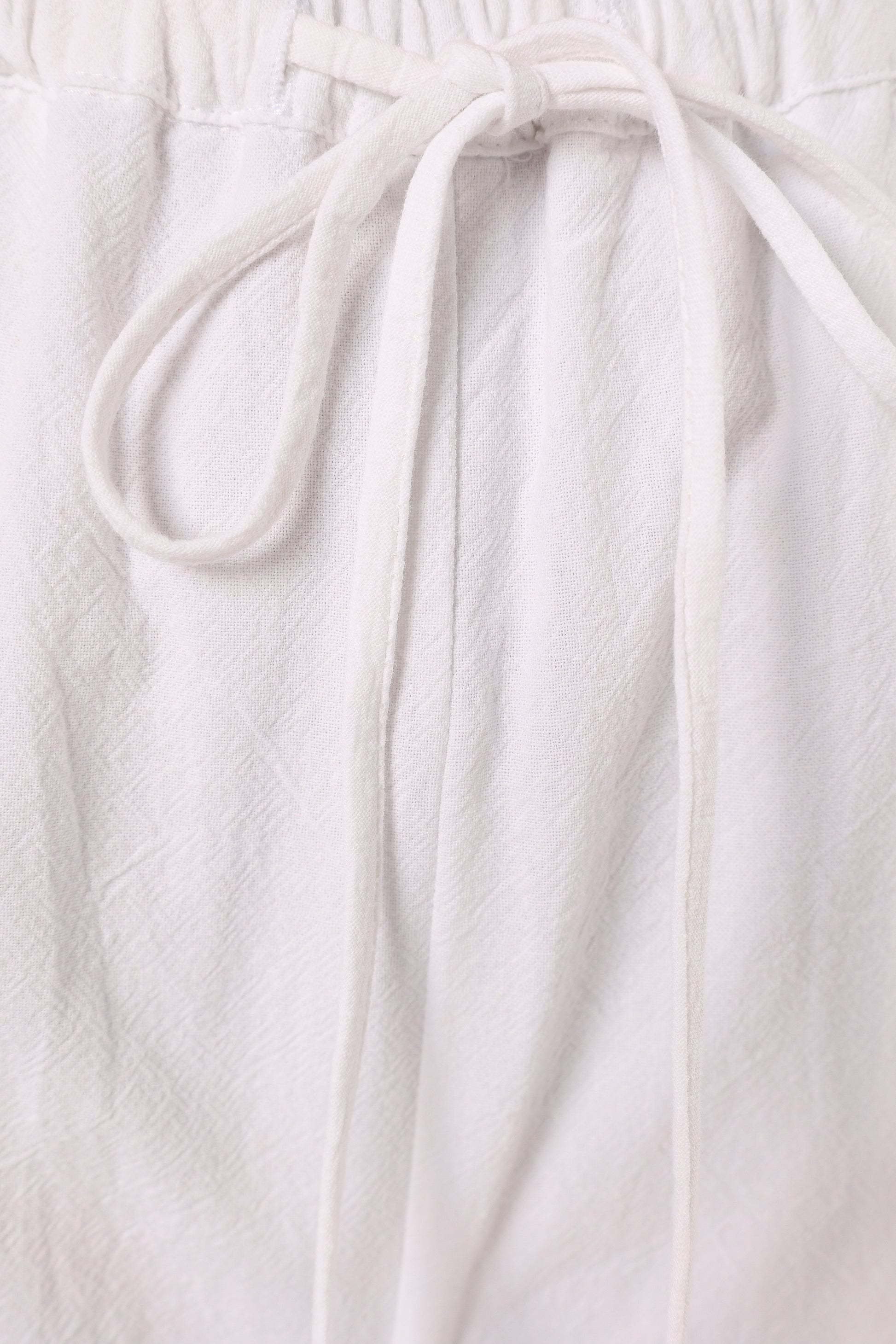 DETAILS Meet the Amalia Pant in White Blue - a high-waisted dream! Designed with a comfy, elasticised drawstring waistband that knows no compromise between style and comfort. Plus, they come with functional pockets for all your little essentials!
