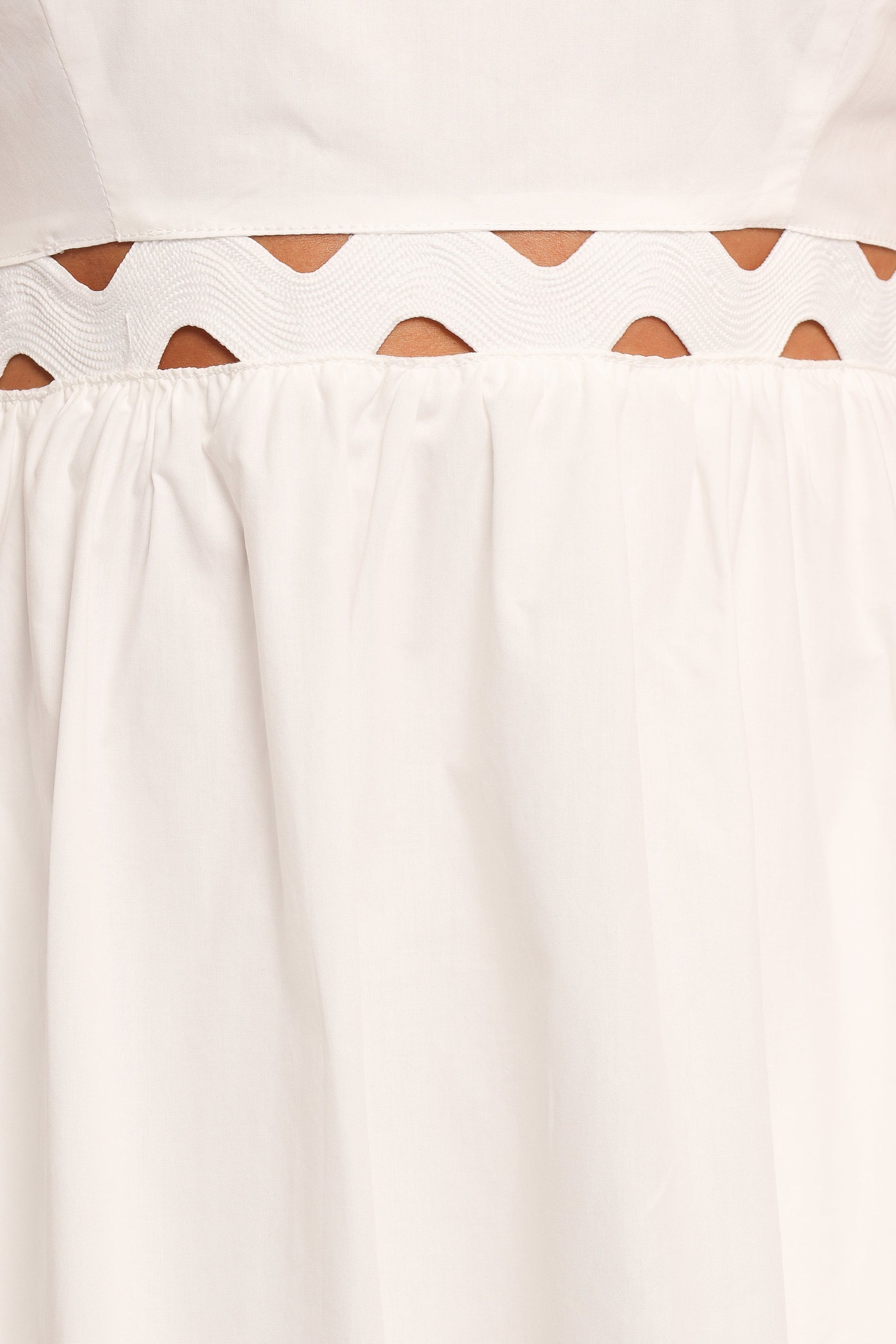 DETAILS Step out in style with the Angelus Midi Dress in White, your new go-to for every occasion. This chic dress features a flattering square neckline and empire waist, adorned with a delicate lace trim that adds a touch of elegance to your look.