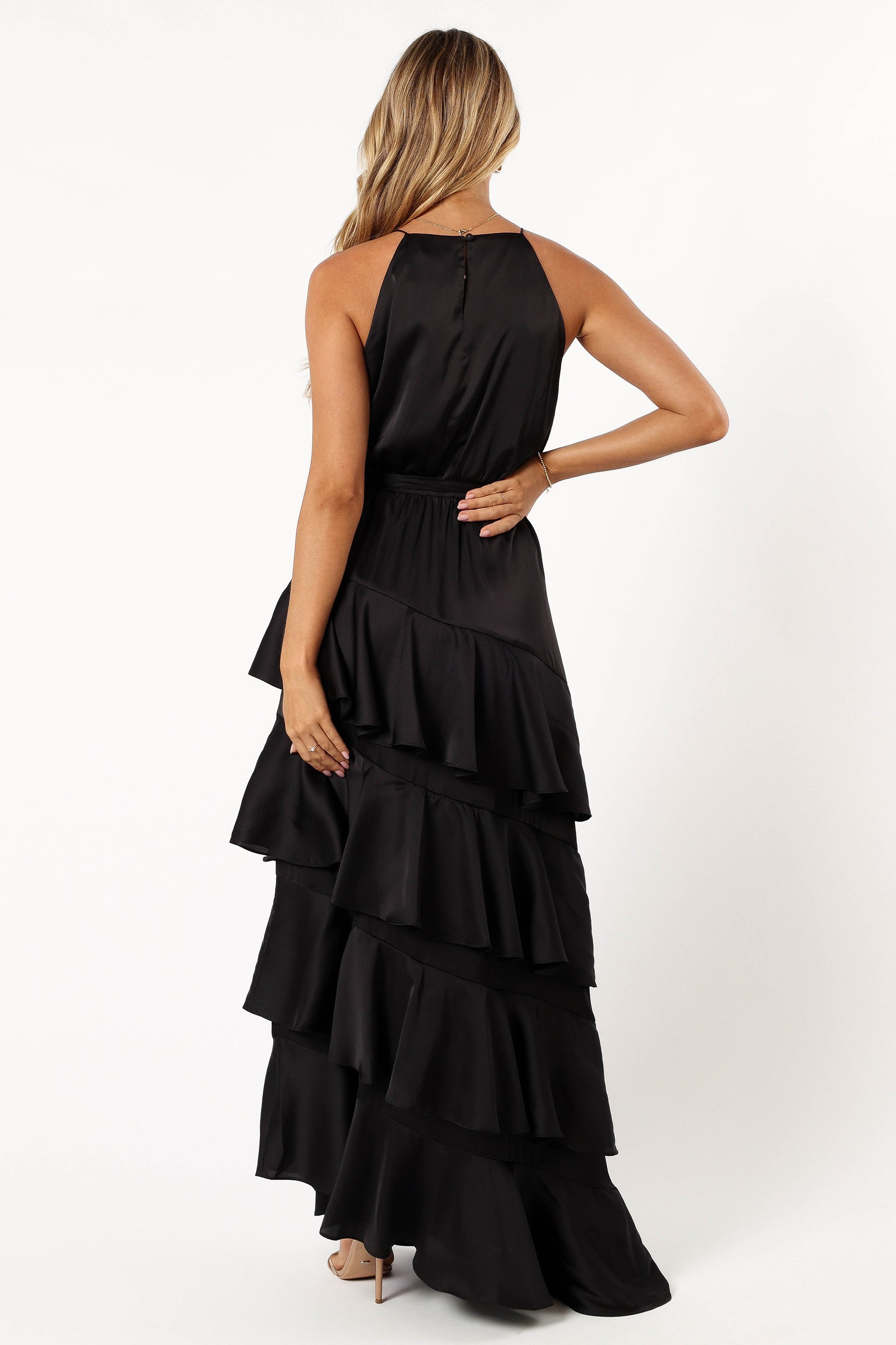 | DETAILS Be party-ready in an instant with this gorgeous maxi length dress! The high straight neckline adds a touch of sophistication, while the non adjustable straps provide extra security and comfort. The layered tier skirt design is given an extra touch of glamour with its beautiful satin sheen finish, making it perfect for party occasions!