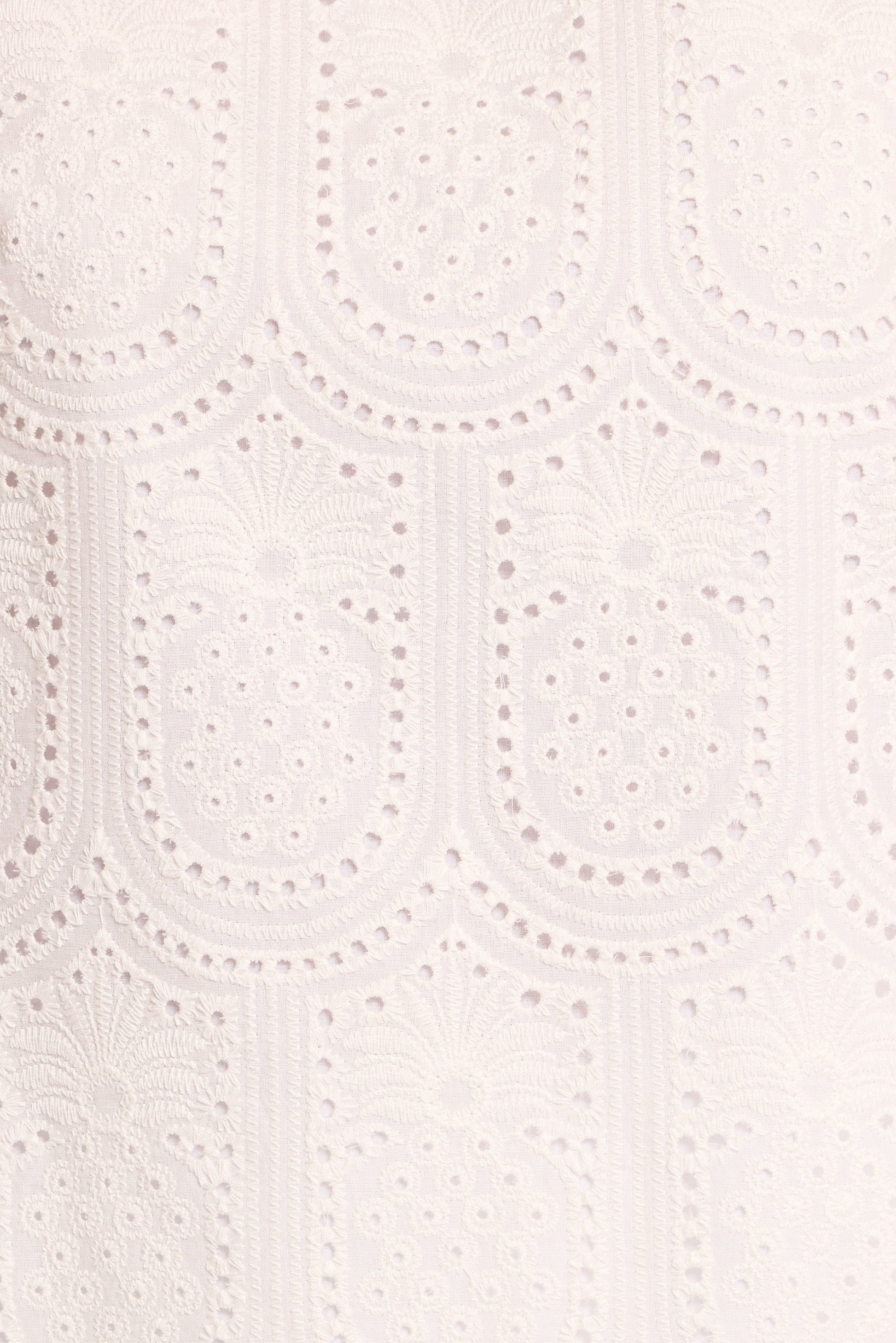 DETAILS Effortless and chic, the Arabella Top in White is your go-to for those sunny-day outings and casual weekend plans. Crafted in delicate embroidery anglaise fabric, this tunic-style top combines breezy comfort with timeless style.