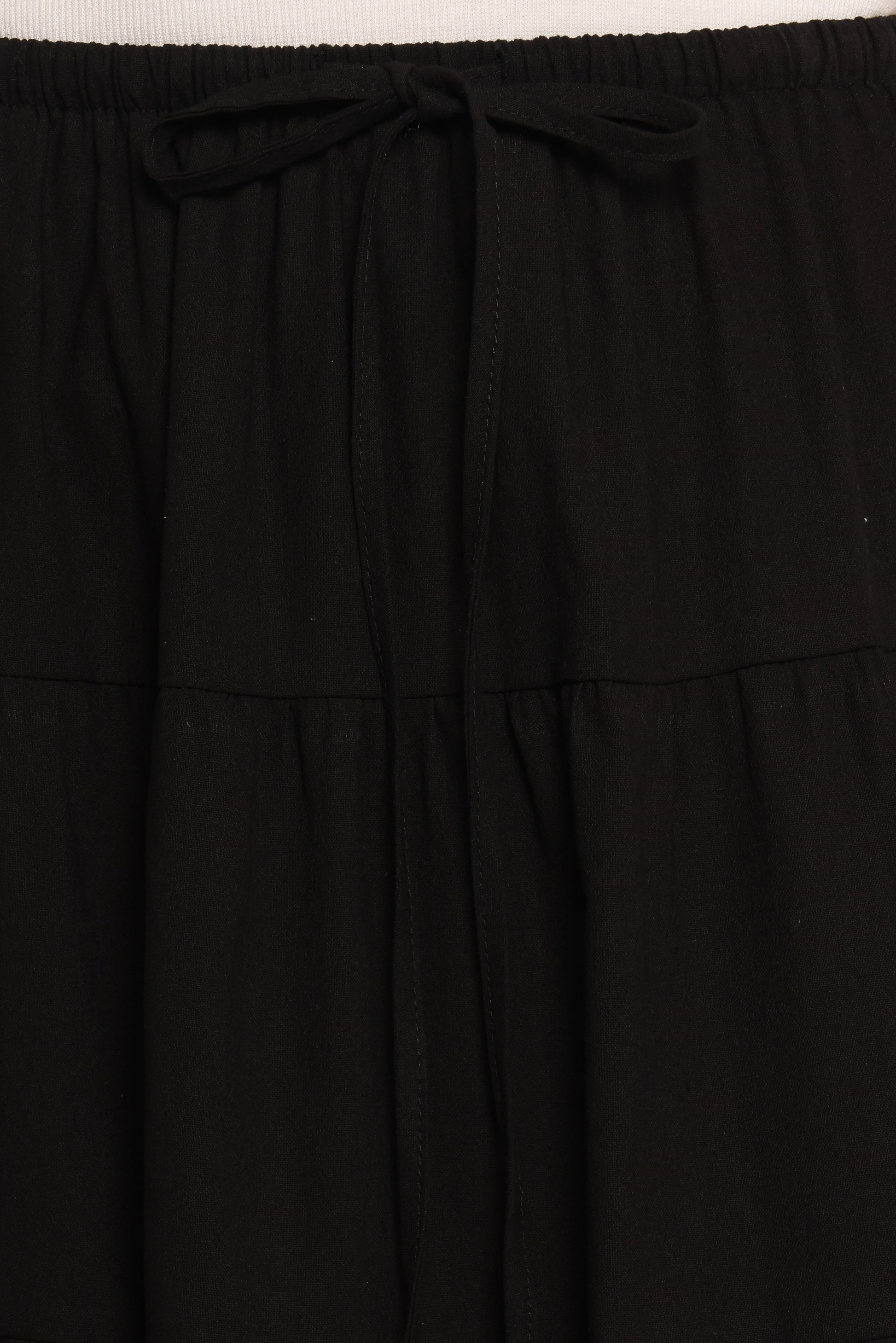 | DETAILS This high-waisted skirt effortlessly flatters any figure, thanks to its elasticised waistband with a chic drawstring tie closure for that perfect fit. The A-line silhouette cascades into a beautiful tiered design, creating movement and fluidity with every step you take.