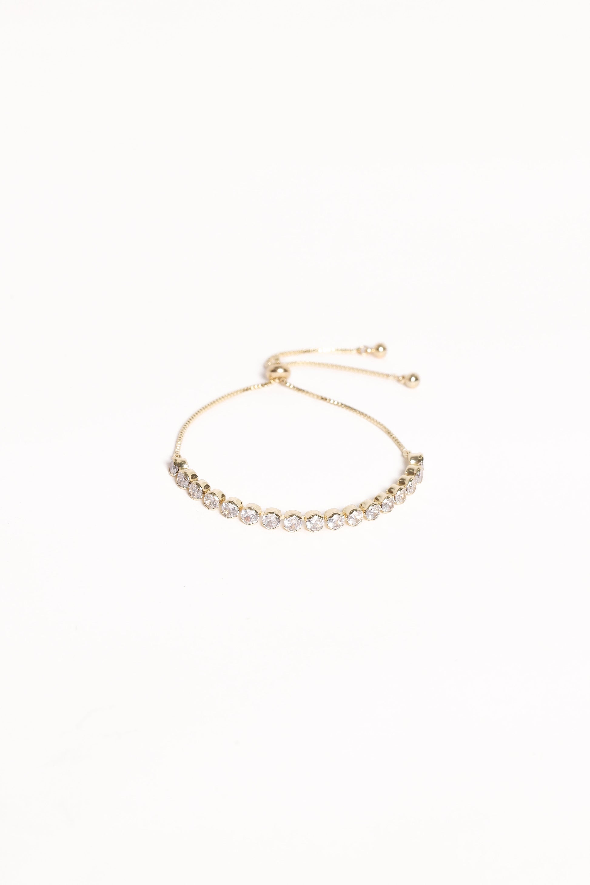 | DETAILS Elevate your wrist game with the Ash Bracelet - Gold, where elegance meets modern design. Inspired by the timeless tennis bracelet, its crystal embellishments shimmer beautifully, catching the light with every movement.