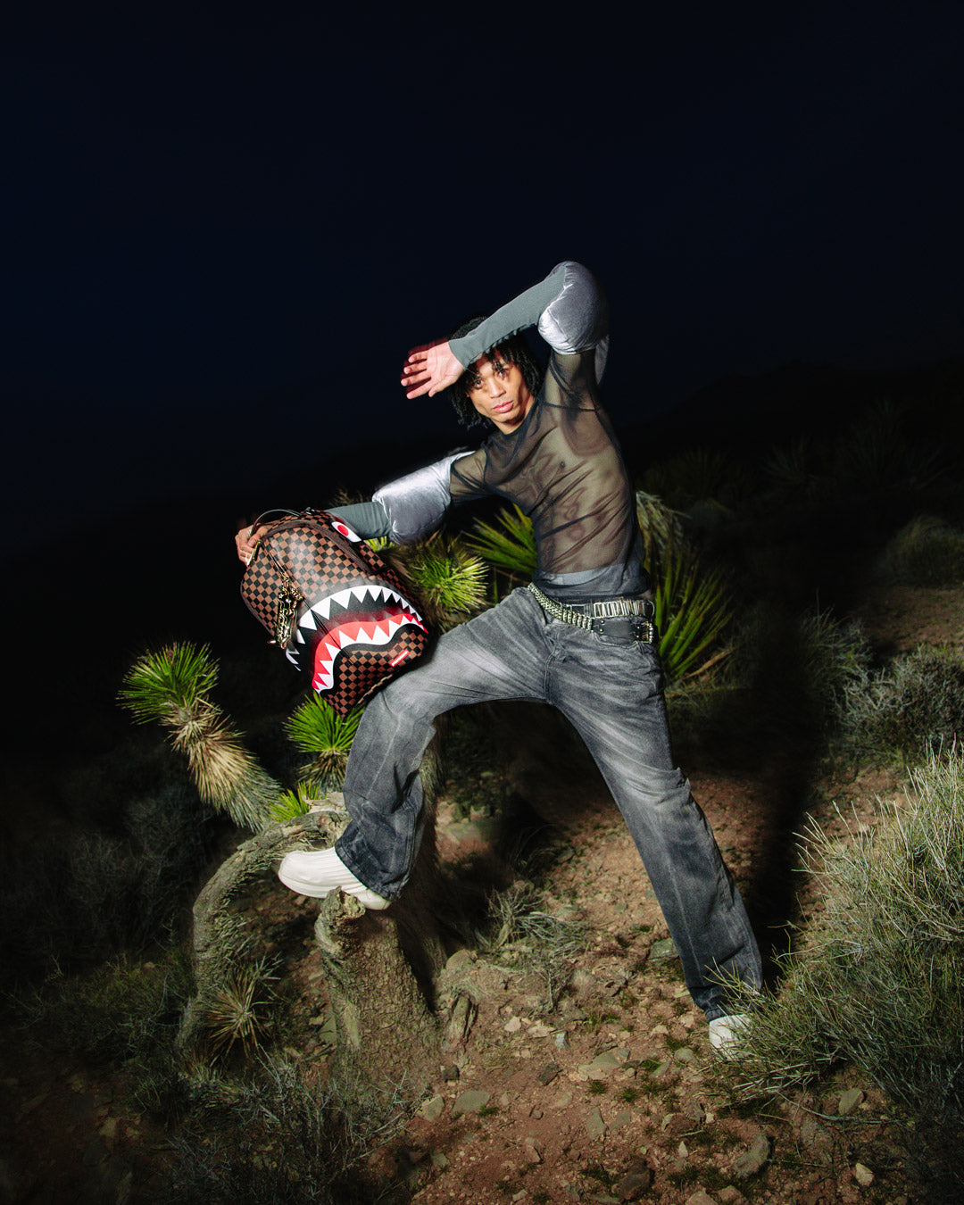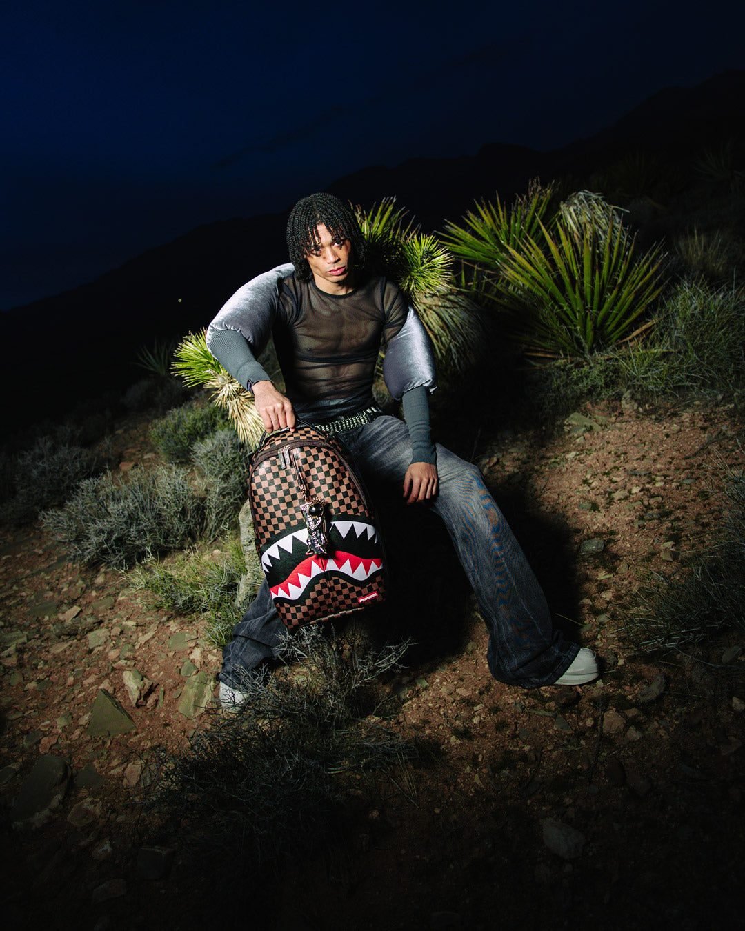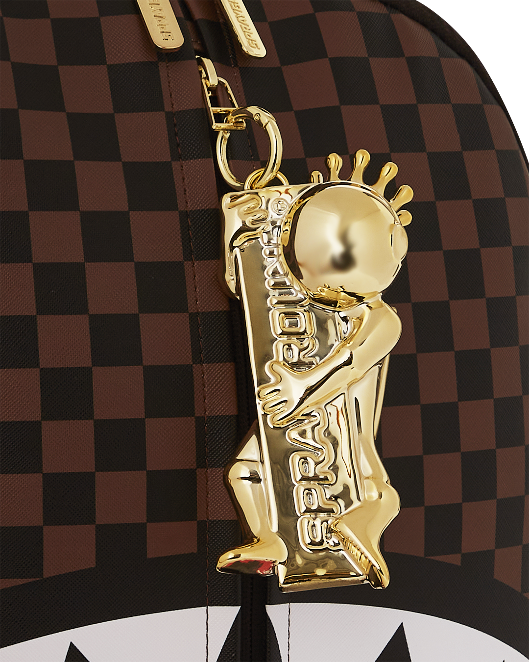 Dimensions: 18' x 6' x 11.5' • Front zipper pocket • Side pockets • Zippered Stash pocket • Separate velour sunglass compartment • Ergonomic mesh back padding • Adjustable Straps for custom sizing • Gold zippers with metal hardware • Metal 'Sprayground Authentic' badge • Slide through back sleeve connects to carry-on luggage to free your hands