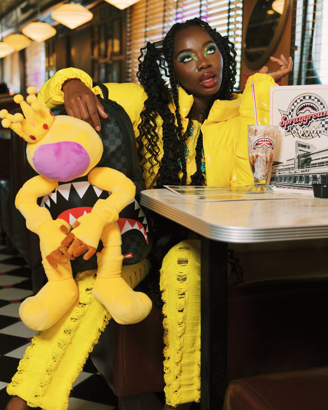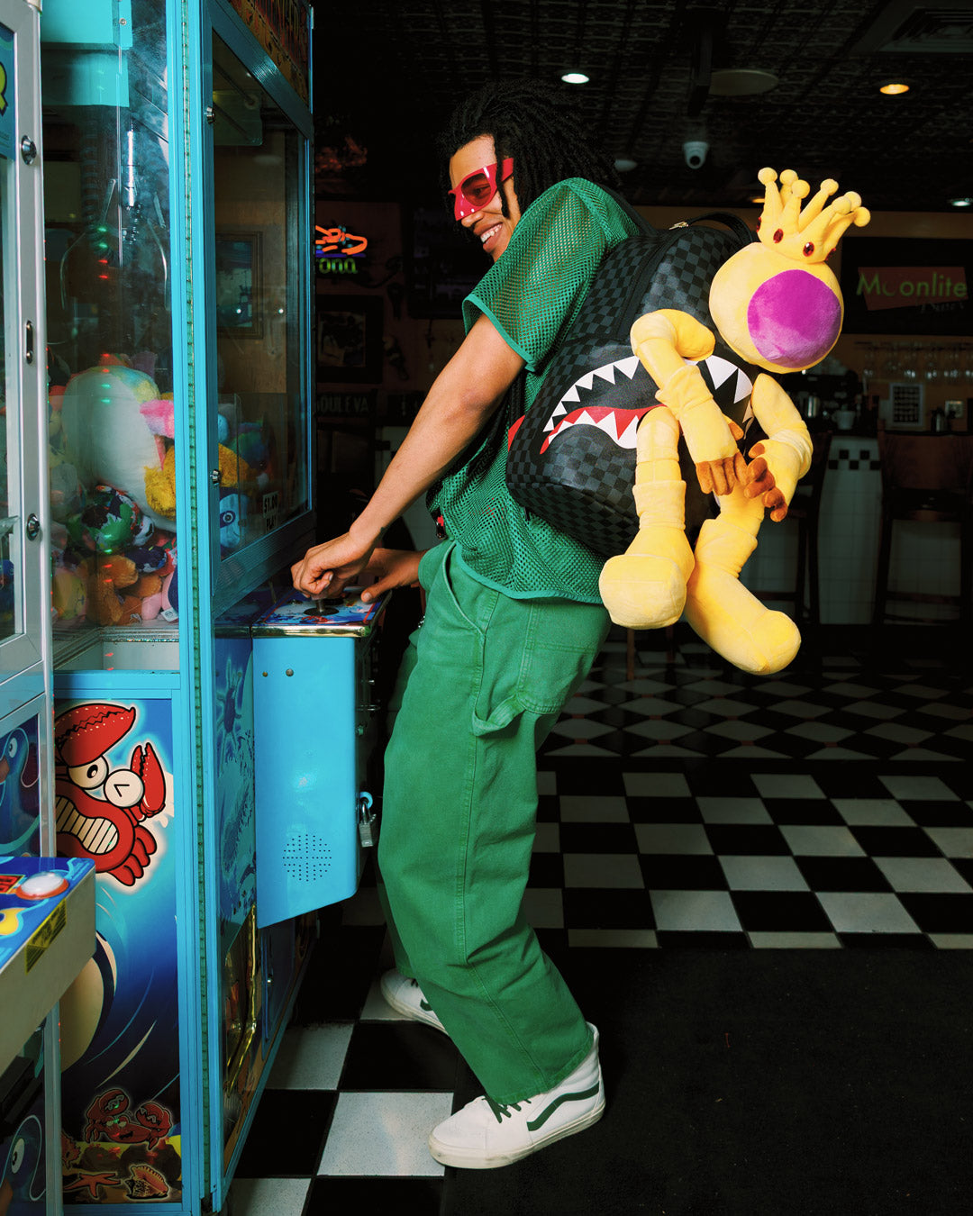Dimensions: 18' x 6' x 11.5' • Front zipper pocket • Side pockets • Zippered Stash pocket • Separate velour sunglass compartment • Ergonomic mesh back padding • Adjustable Straps for custom sizing • Gold zippers with metal hardware • Metal 'Sprayground Authentic' badge • Slide through back sleeve connects to carry-on luggage to free your hands