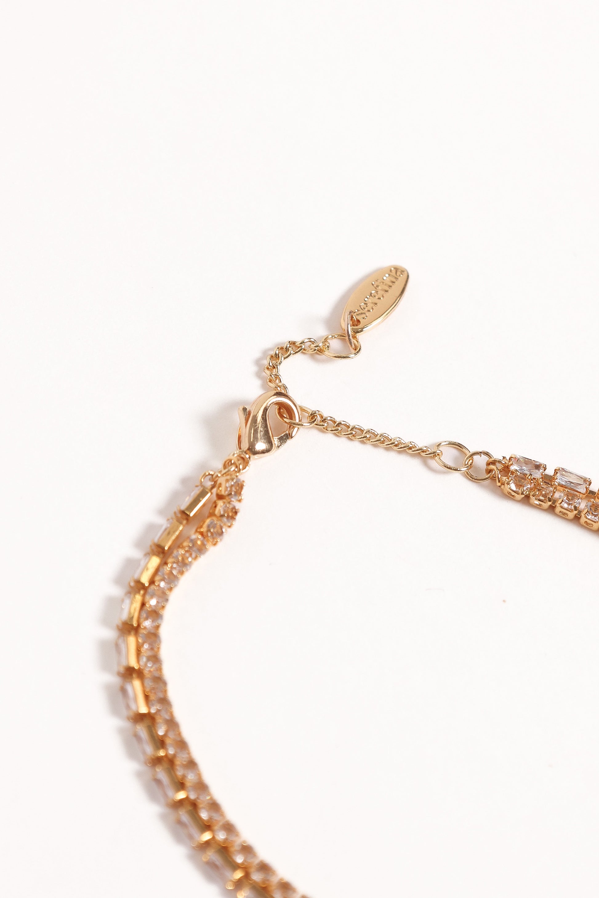 | DETAILS This double-layer gold link chain bracelet is designed to catch the light and your eye, featuring a stunning cubic zirconia detail that adds just the right amount of sparkle. Crafted with a gold-plated finish, it promises both durability and style, making it a timeless addition to any outfit.