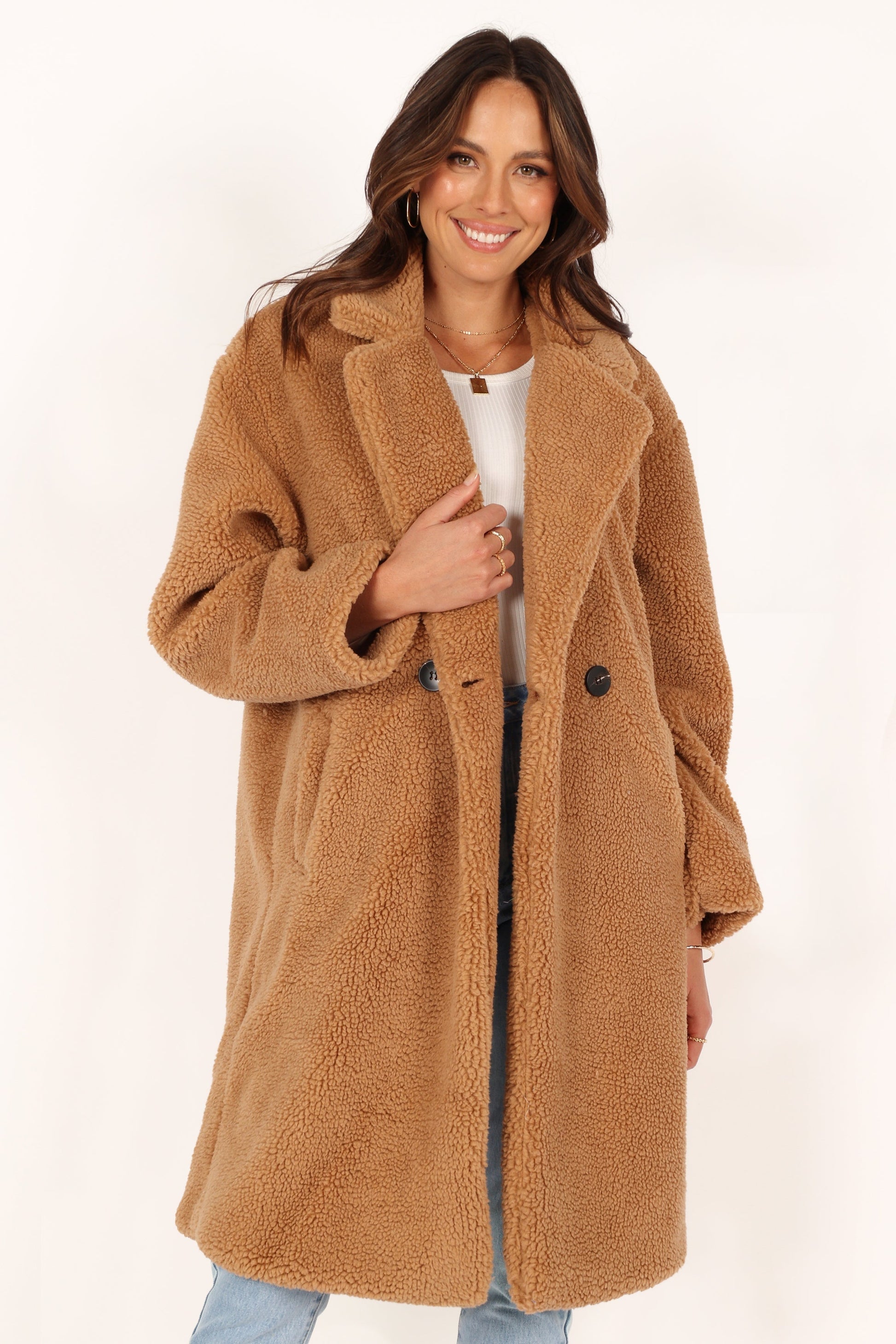 DETAILS Make a statement this season with our stylish long lined teddy coat! Perfect for chilly days and nights, this classy coat features a collared neckline, long sleeves and a double functional button close.