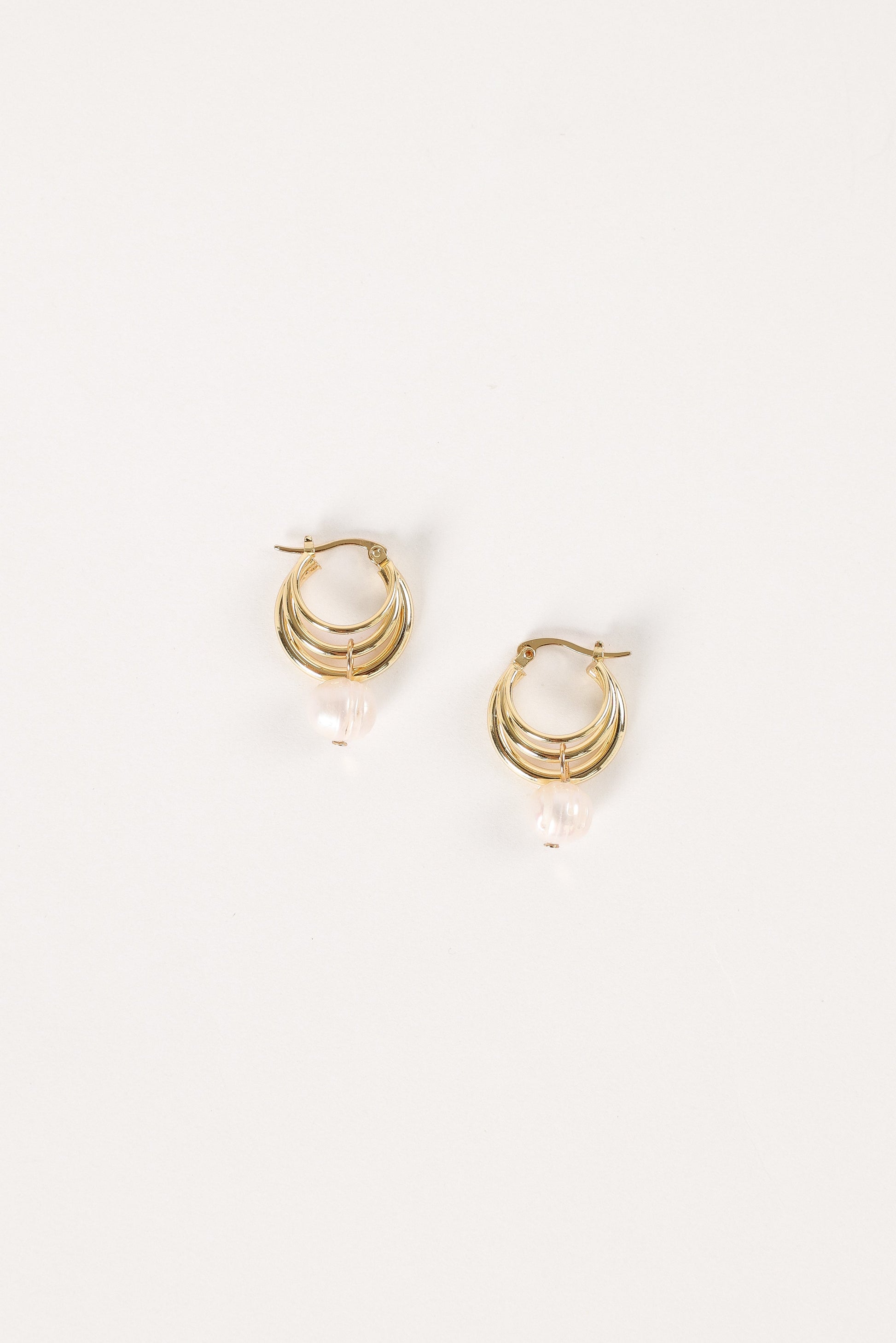 | DETAILS Looking for a classic and timeless accessory to elevate your everyday look? Look no further than our gold Hoop Design Earrings. With its faux pearl drop and butterfly back, you'll be sure to turn heads wherever you go!