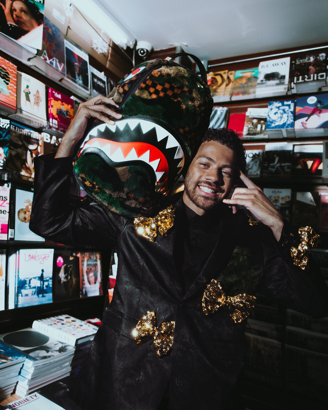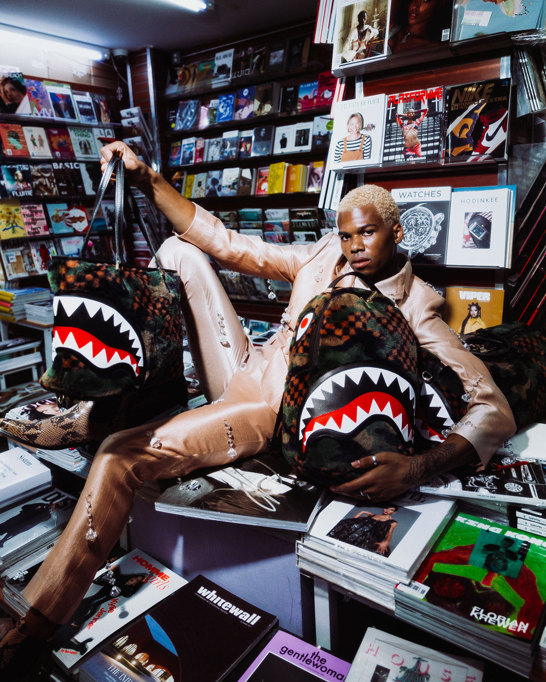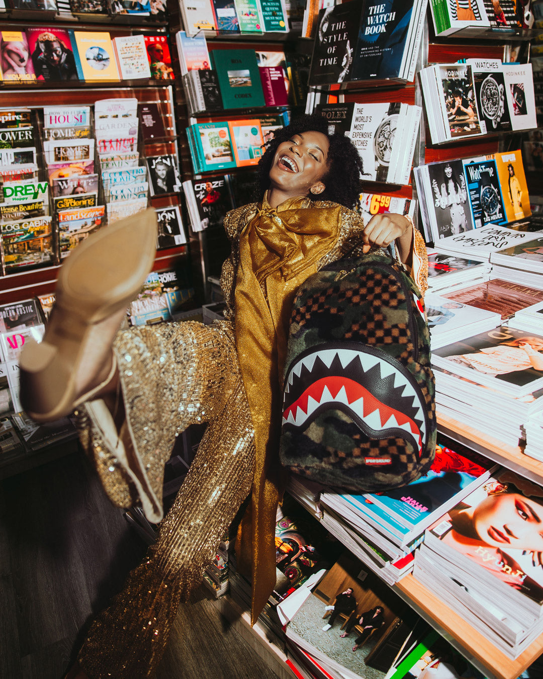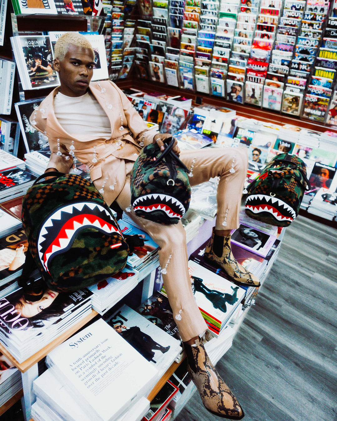 Dimensions: 18' x 6' x 11.5' • Front zipper pocket • Side pockets • Zippered Stash pocket • Separate velour sunglass compartment • Ergonomic mesh back padding • Adjustable Straps for custom sizing • Gold zippers with metal hardware • Metal 'Sprayground Authentic' badge • Slide through back sleeve connects to carry-on luggage to free your hands