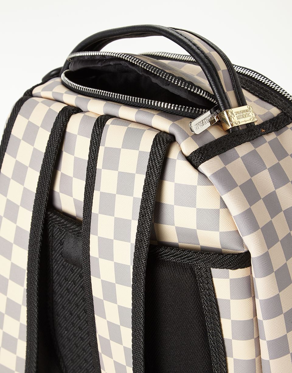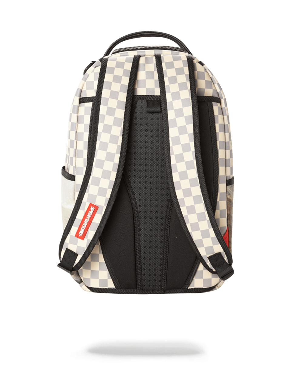 ExteriorDimensions: 18' x 6' x 11.5' ∙ Front zipper pocket ∙ Side pockets ∙ Zippered Stash pocket ∙ Ergonomic mesh back padding ∙ Adjustable Straps for custom sizing ∙ Nylon Zippers with Metal Hardware ∙ Metal 'Sprayground Authentic' badge ∙ Slide through back sleeve connects to Carry on luggage to free your hands