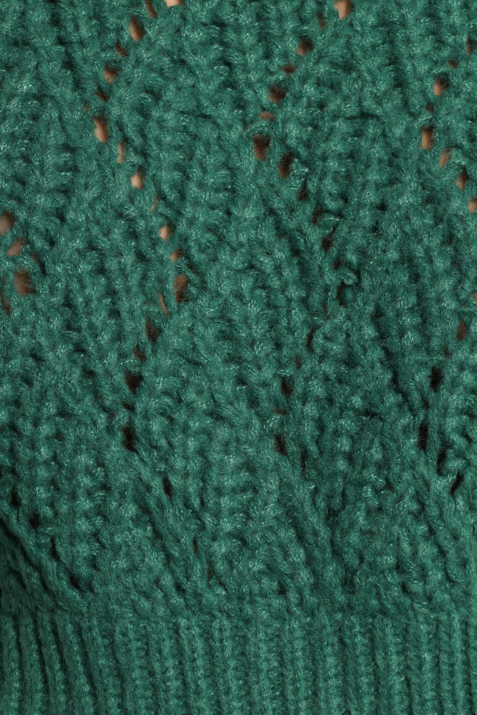DETAILS Add an effortless edge to your wardrobe with the Birdie Tie Side Knit Sweater in Emerald. This piece combines style and versatility with its cropped length and patterned knit design, making it perfect for layering or showing off high-waisted jeans.