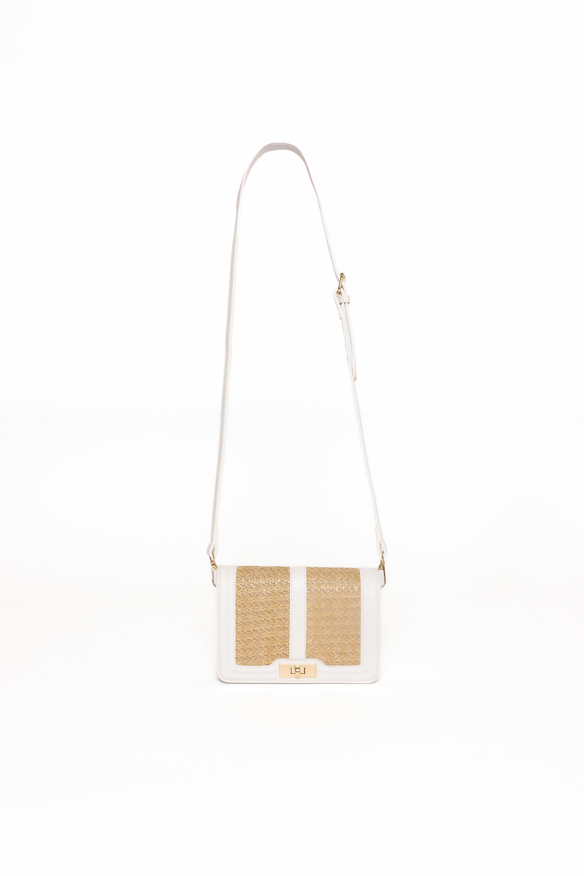 DETAILS Make every outfit pop with the Blanche Bag in White. This mini crossbody combines practicality with on-trend style, boasting a chic square shape and a fold-over flap with a sleek twist-latch closure.