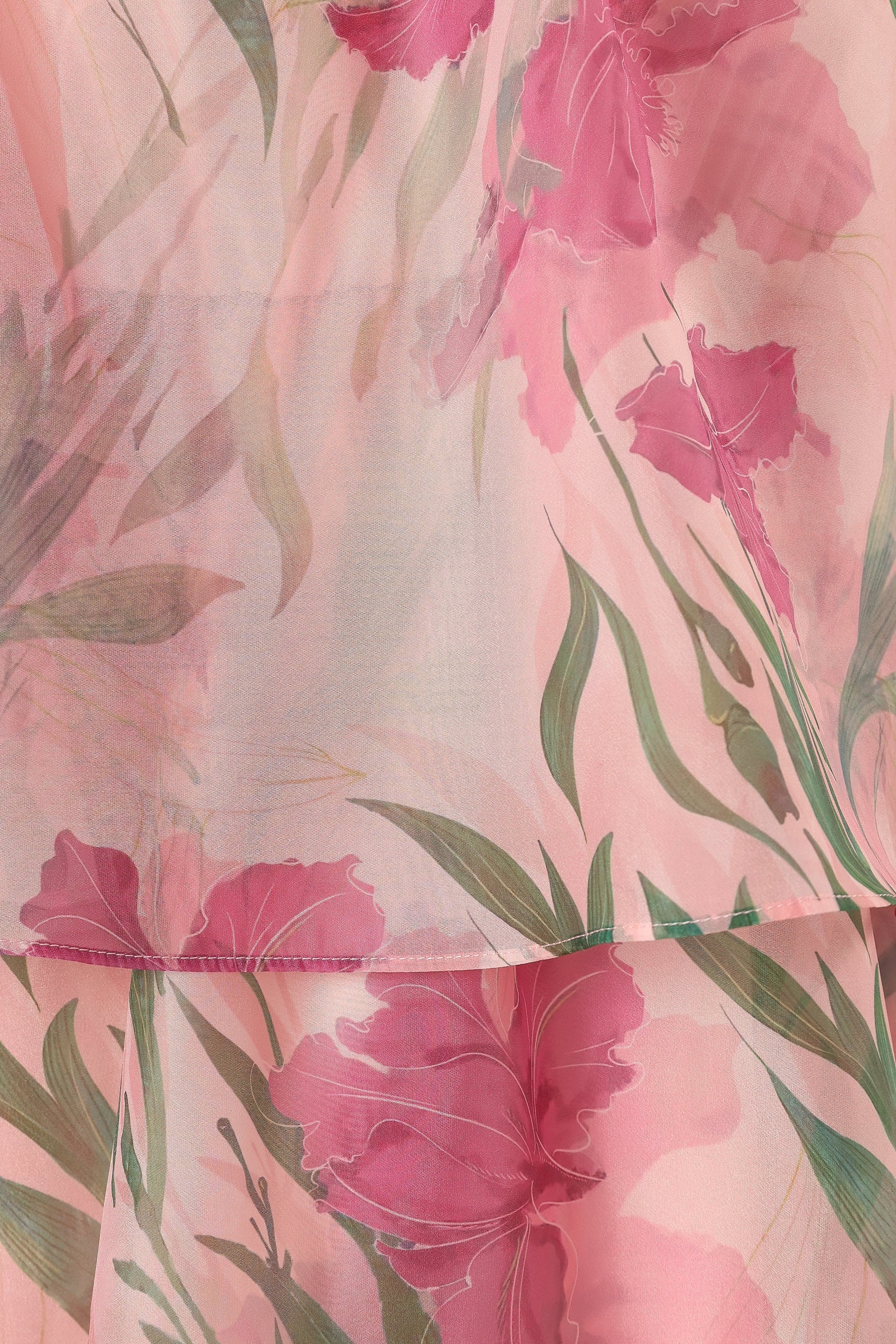 DETAILS This maxi dress is perfect for any formal or special event! With its strapless style, elasticised straight neckline and drop-tiered ruffle design, this maxi dress will make you feel both elegant and feminine. The pink floral leaf print adds an extra touch of fun to the look.