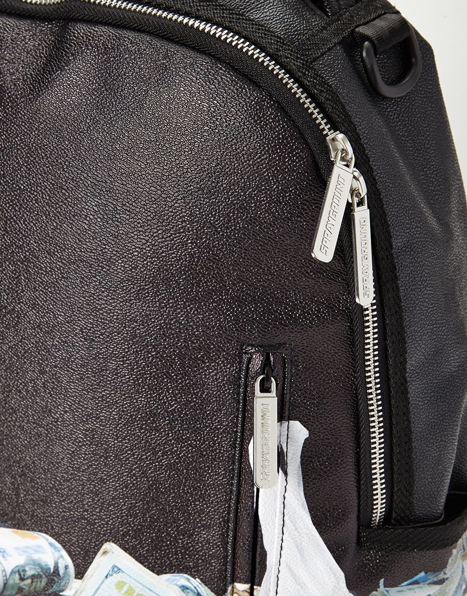 ExteriorDimensions: 18' x 6' x 11.5' ∙ Front zipper pocket ∙ Side pockets ∙ Zippered Stash pocket ∙ Ergonomic mesh back padding ∙ Adjustable Straps for custom sizing ∙ Nylon Zippers with Metal Hardware ∙ Metal 'Sprayground Authentic' badge ∙ Slide through back sleeve connects to Carry on luggage to free your hands