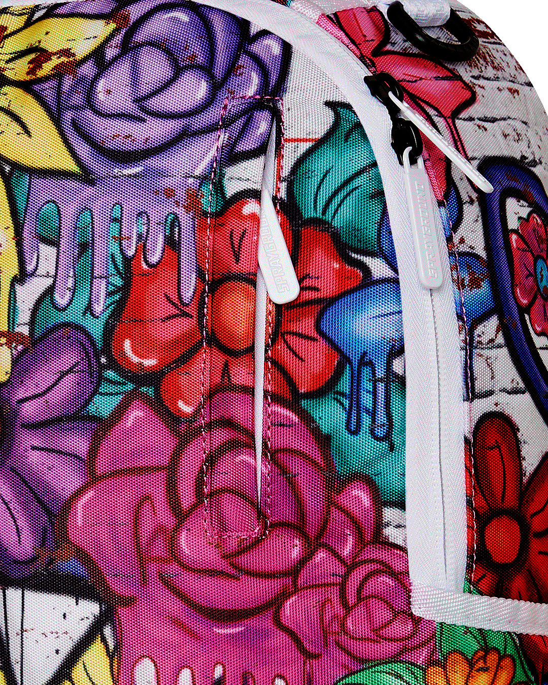 Dimensions: 18' x 6' x 11.5' • Front zipper pocket • Side pockets • Zippered Stash pocket • Separate velour sunglass compartment • Ergonomic mesh back padding • Adjustable Straps for custom sizing • Gold zippers with metal hardware • Metal 'Sprayground Authentic' badge • Slide through back sleeve connects to carry-on luggage to free your hands