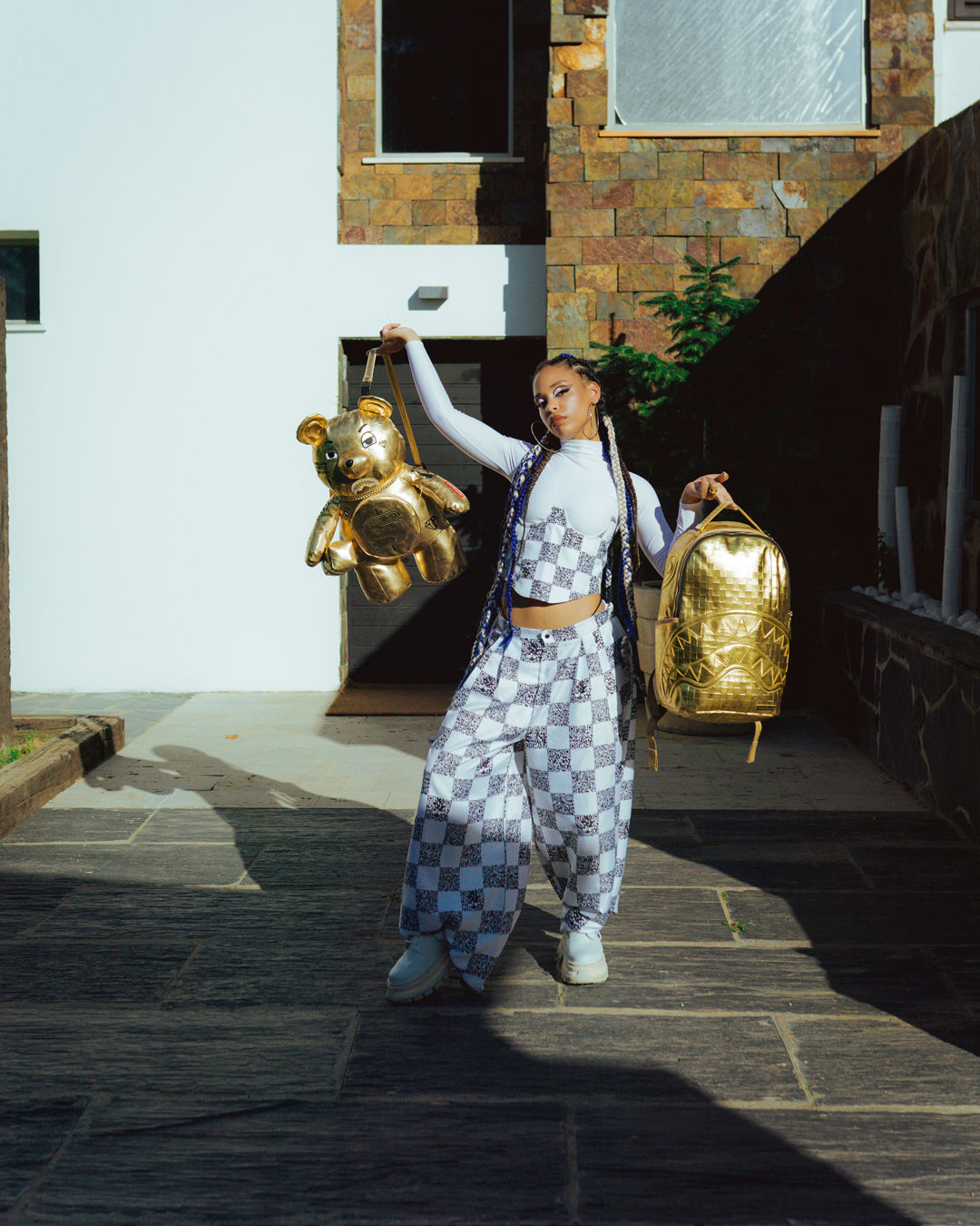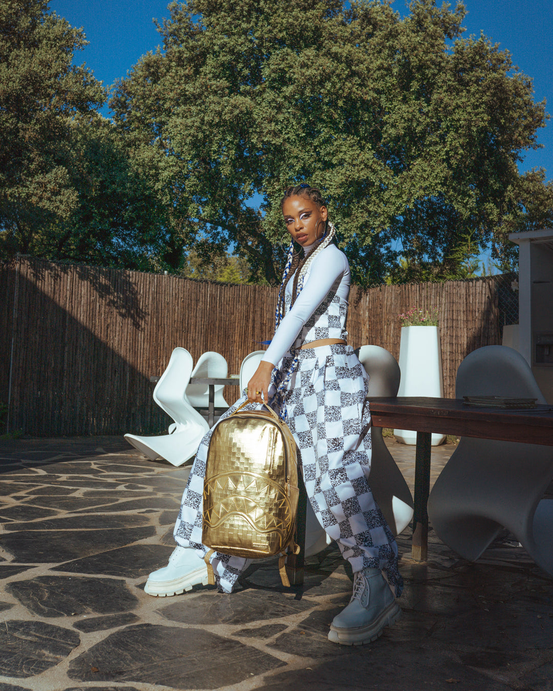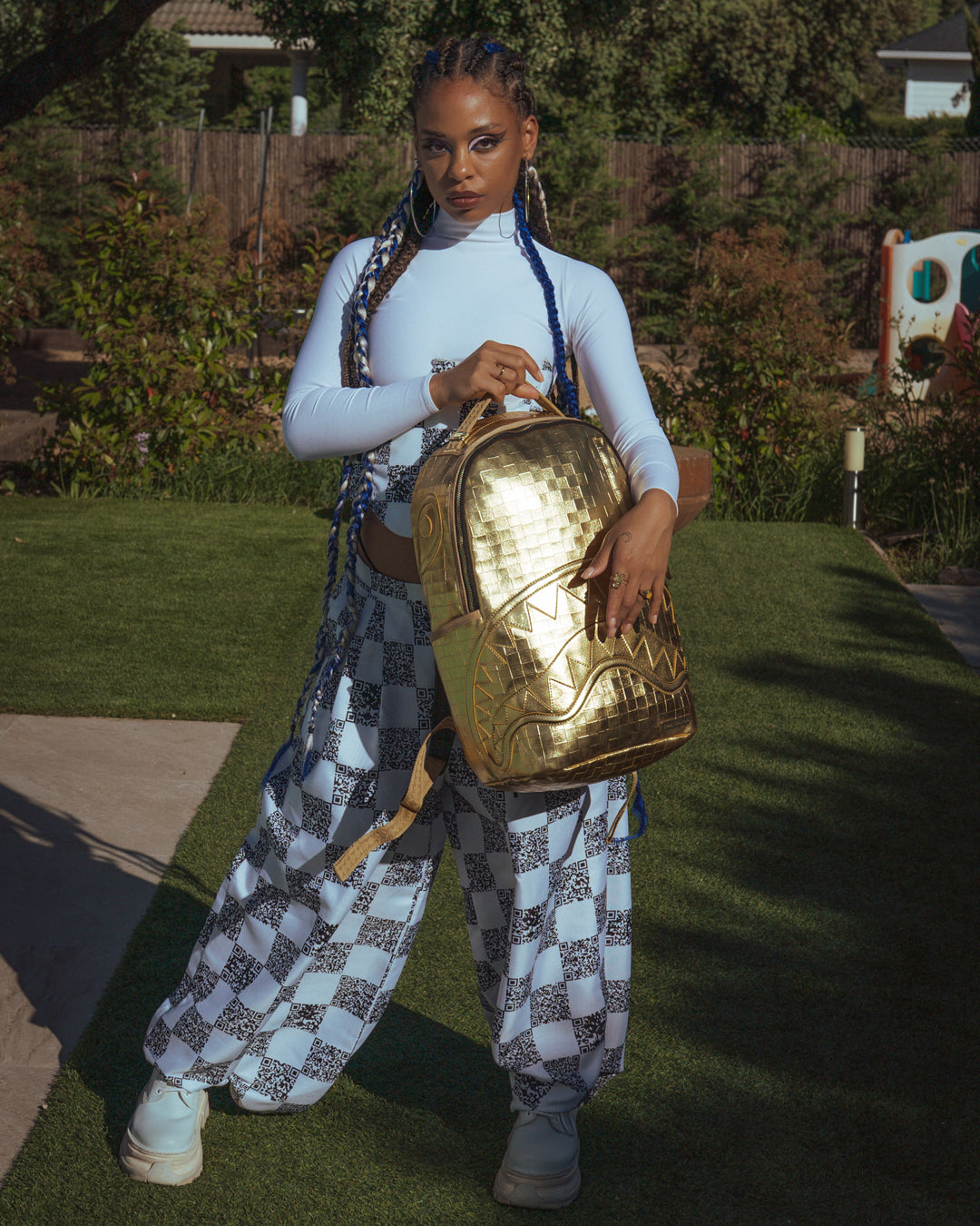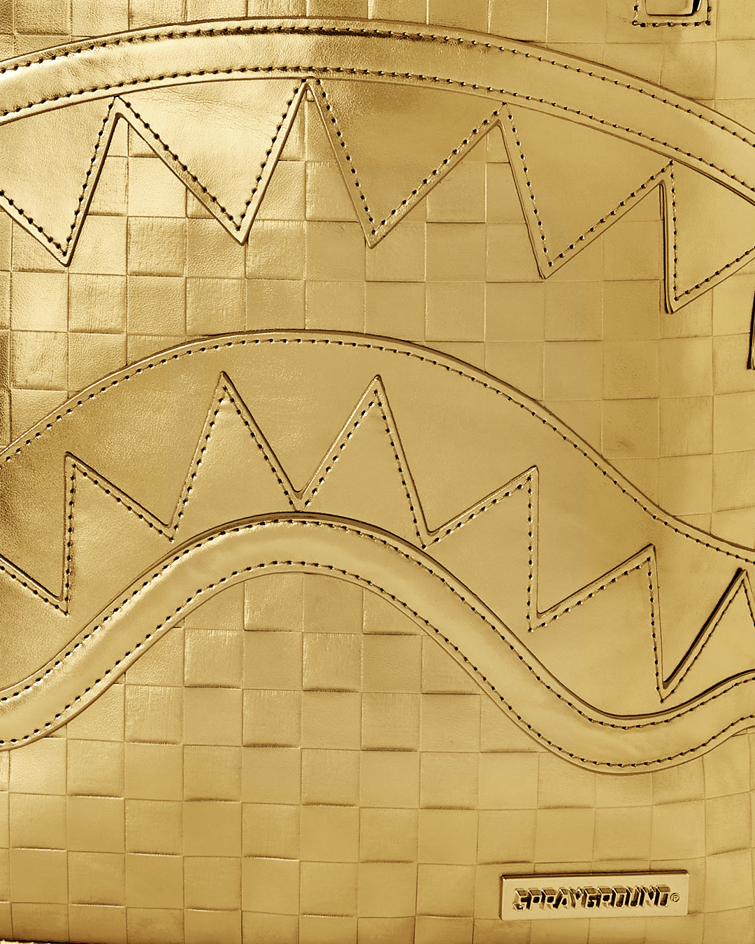Dimensions: 18' x 6' x 11.5' • Front zipper pocket • Side pockets • Zippered Stash pocket • Separate velour sunglass compartment • Ergonomic mesh back padding • Adjustable Straps for custom sizing • Gold zippers with metal hardware • Metal 'Sprayground Authentic' badge • Slide through back sleeve connects to carry-on luggage to free your hands