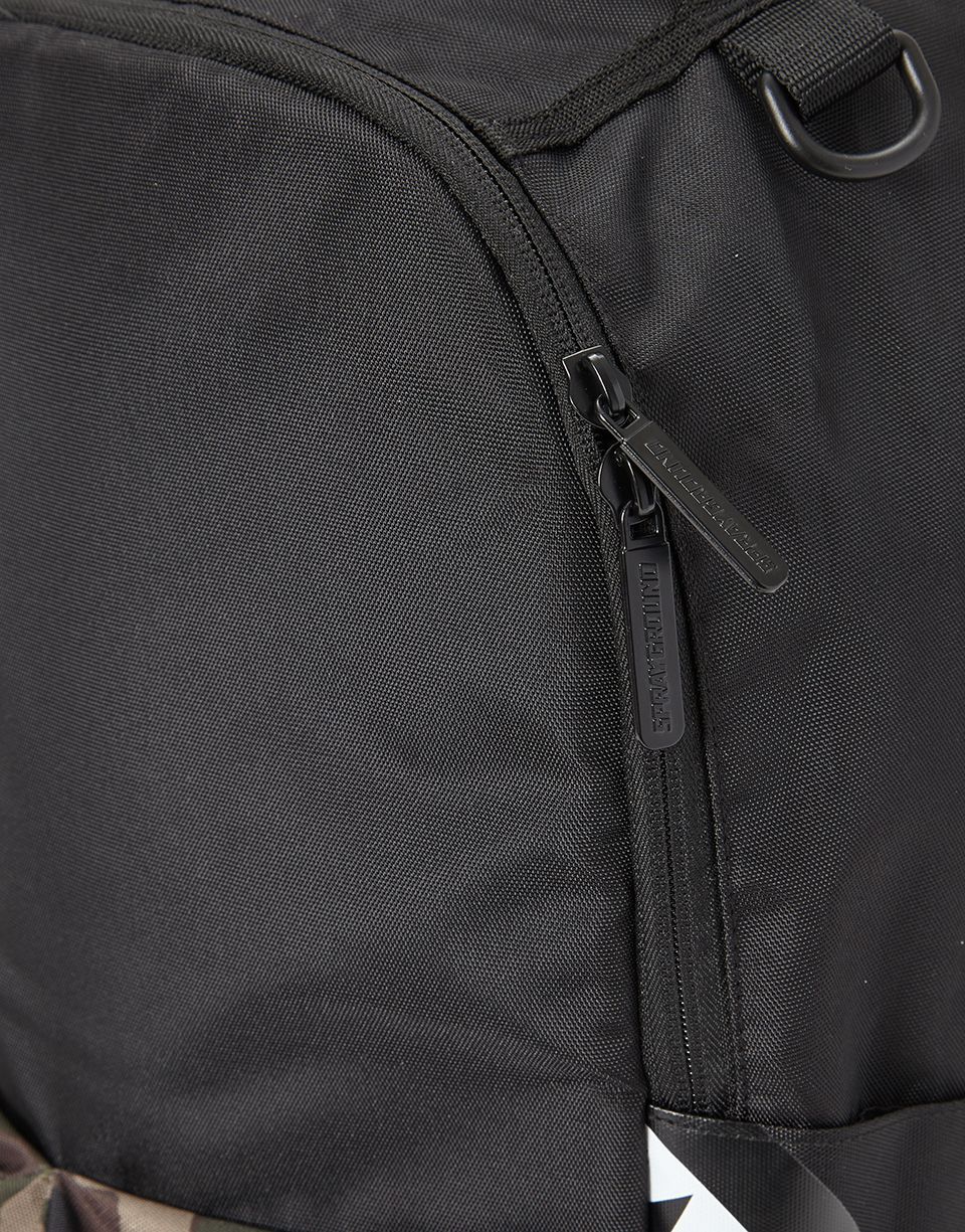 ExteriorDimensions: 18' x 6' x 11.5' ∙ 2 Front zippered pockets ∙ Side pockets ∙ Zippered Stash pocket ∙ Ergonomic mesh back padding ∙ Adjustable Straps for custom sizing ∙ Nylon Zippers with Metal Hardware ∙ Metal 'Sprayground Authentic' badge ∙ Slide through back sleeve connects to Carry on luggage to free your hands