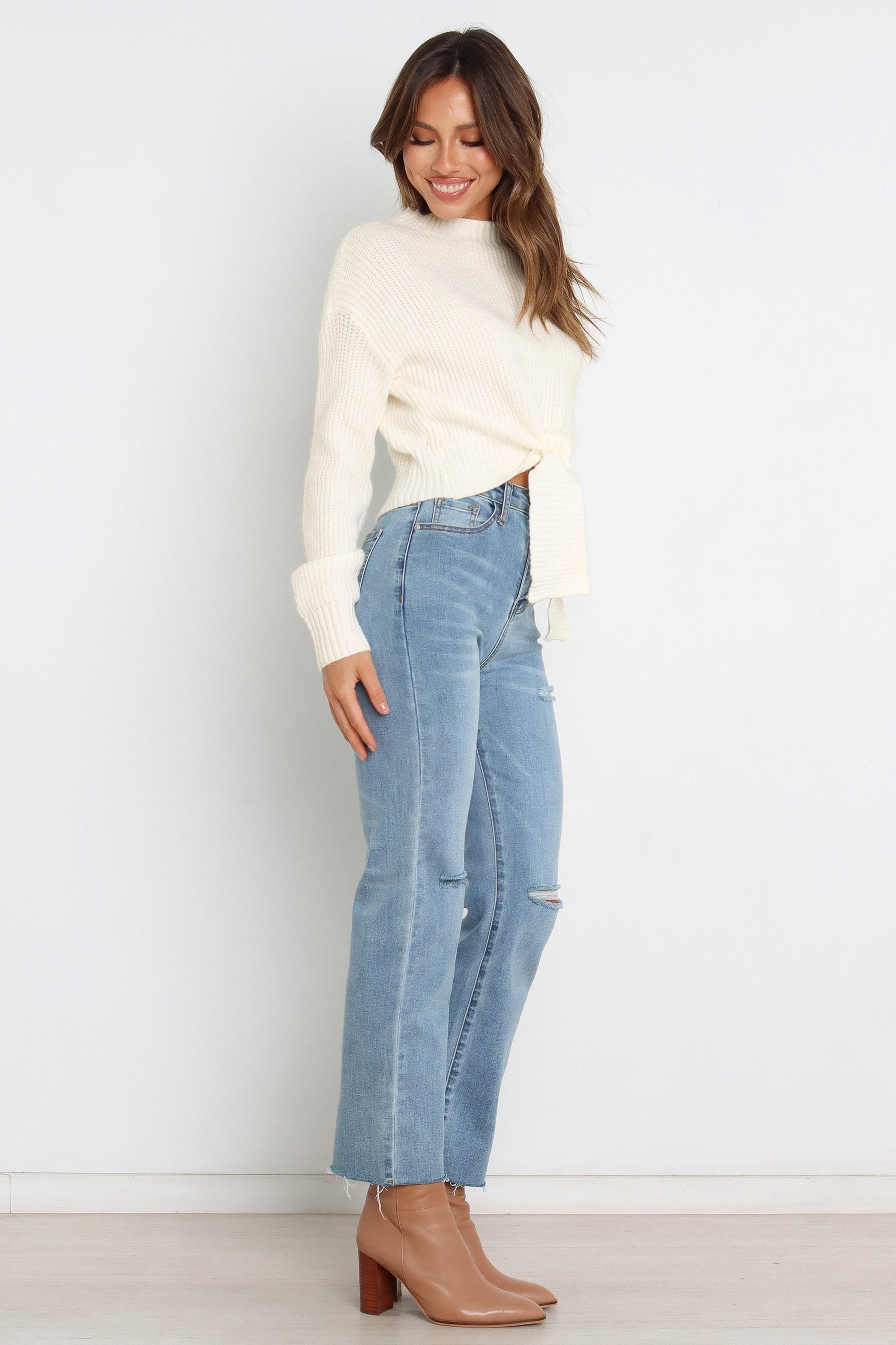 DETAILS This knit sweater is sure to be a go-to in your wardrobe! It features a round ribbed neckline that looks great on everyone, and long sleeves with ribbed cuffs. We've added an extra special touch with the waist tie feature.