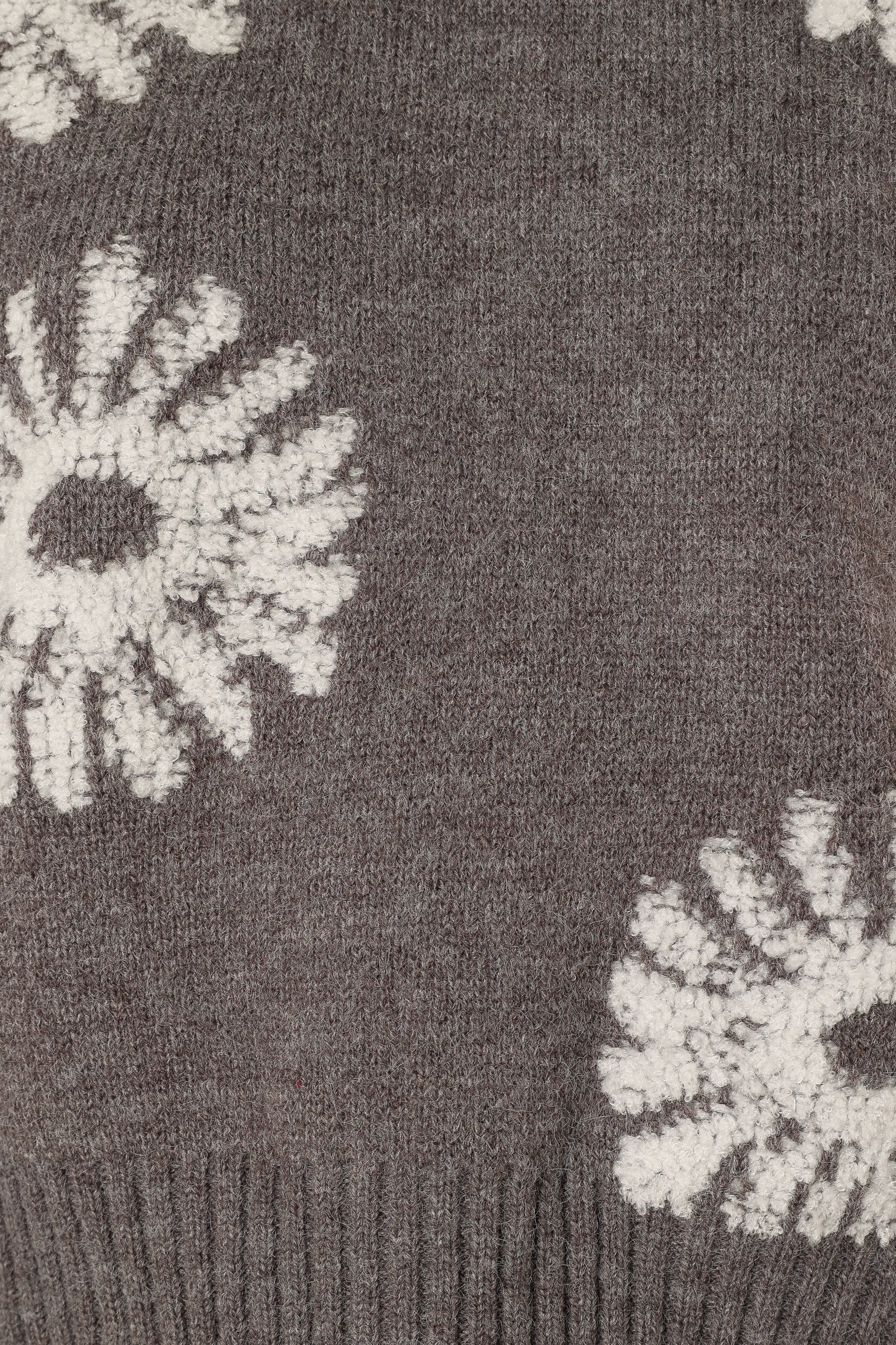 DETAILS Looking for something cute and comfy? This Grey knit sweater is the answer. With its round neckline, long sleeves with ribbed cuffs, and abstract pattern design, you'll get both fashion and comfort!