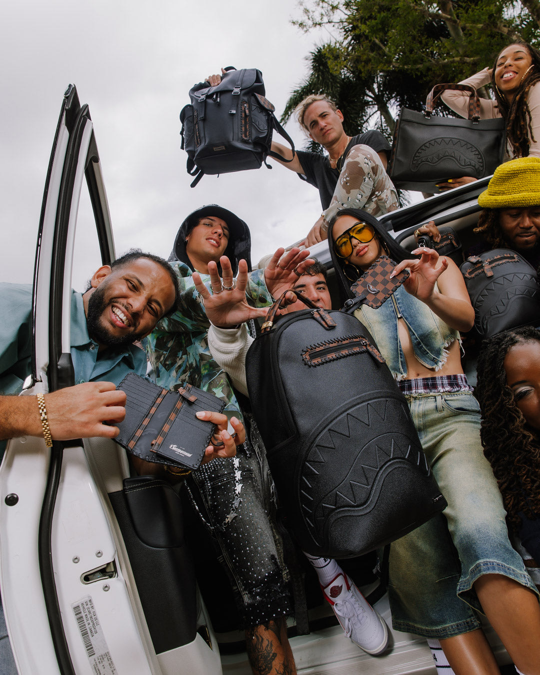 Dimensions: 18' x 6' x 11.5' • Front zipper pocket • Side pockets • Zippered Stash pocket • Separate velour sunglass compartment • Ergonomic mesh back padding • Adjustable Straps for custom sizing • Gold zippers with metal hardware • Metal 'Sprayground Authentic' badge • Slide through back sleeve connects to carry-on luggage to free your hands