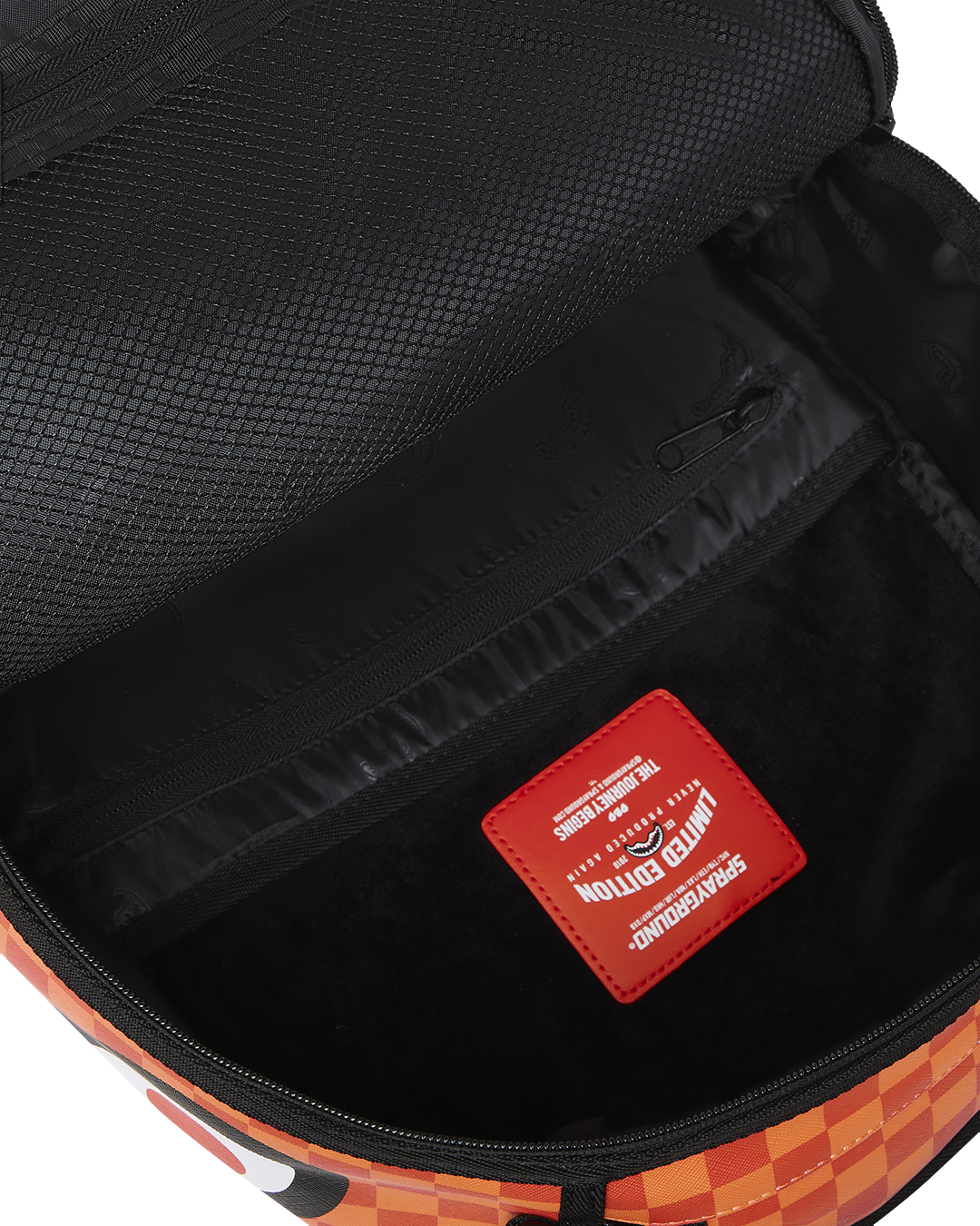 Dimensions: 18' x 6' x 11.5' • Front zipper pocket • Side pockets • Zippered Stash pocket • Separate velour sunglass compartment • Ergonomic mesh back padding • Adjustable Straps for custom sizing • Gold zippers with metal hardware • Metal 'Sprayground Authentic' badge • Slide through back sleeve connects to carry-on luggage to free your hands