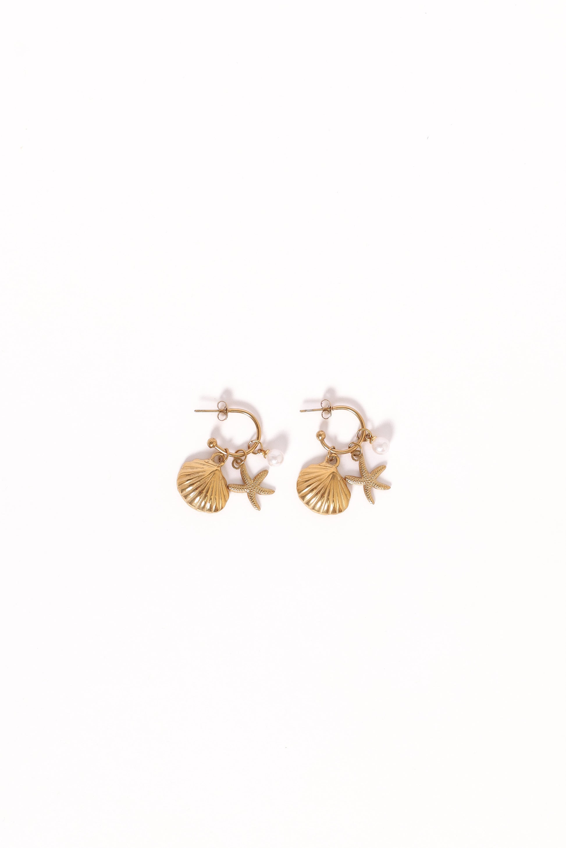 DETAILS Elevate your accessorising game with the Cypress Earrings in Gold, perfect for adding a touch of sophistication to any outfit. These drop-style hoop earrings feature a delicate starfish and faux pearl detail that exudes timeless elegance.
