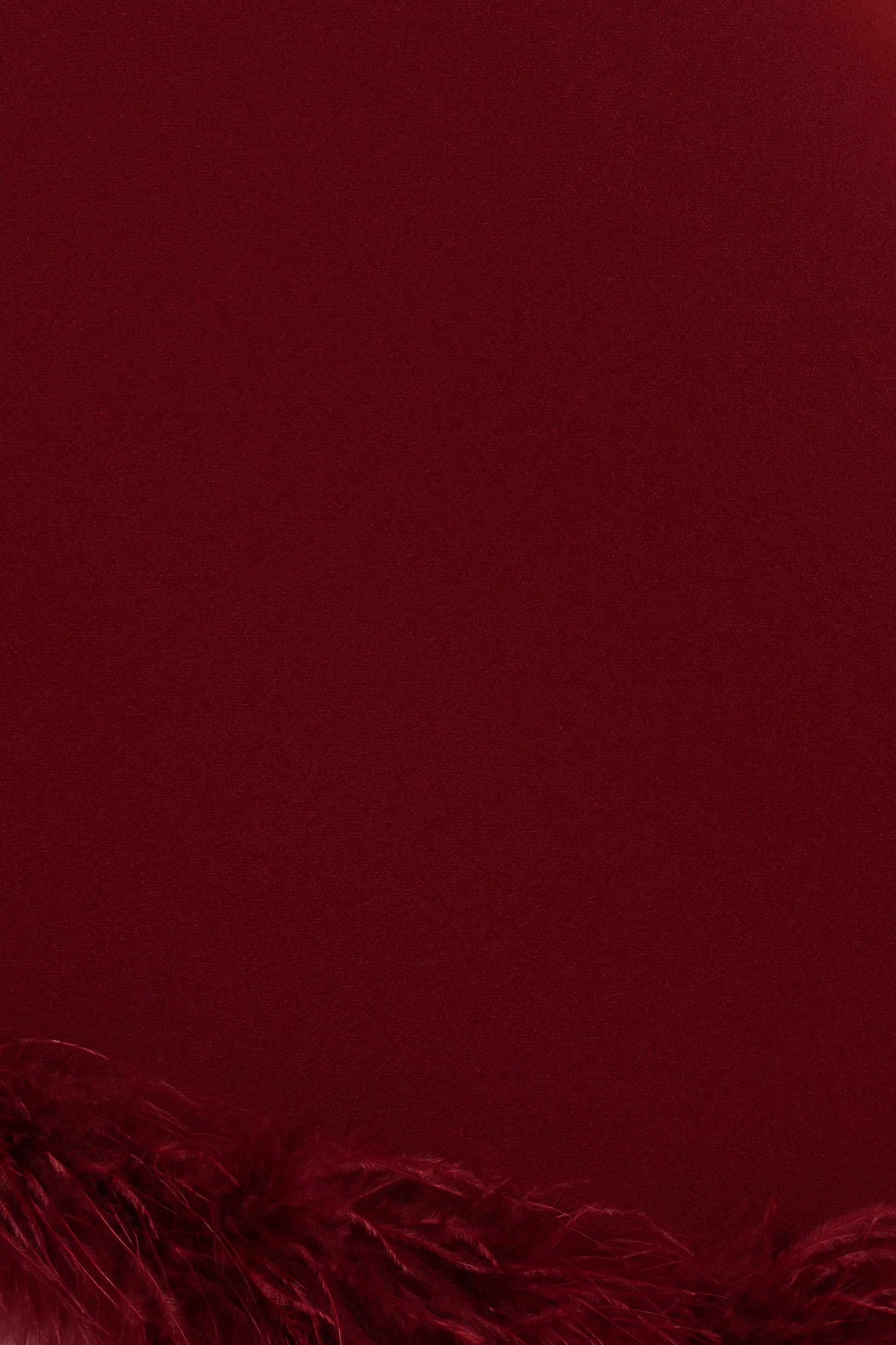 | DETAILS Elevate your evening look with the Dame One Shoulder Midi Dress in Deep Wine. The flared long sleeve, trimmed with luxurious feathers, adds a touch of drama and sophistication, while the asymmetrical hem mirrors this eye-catching detail.