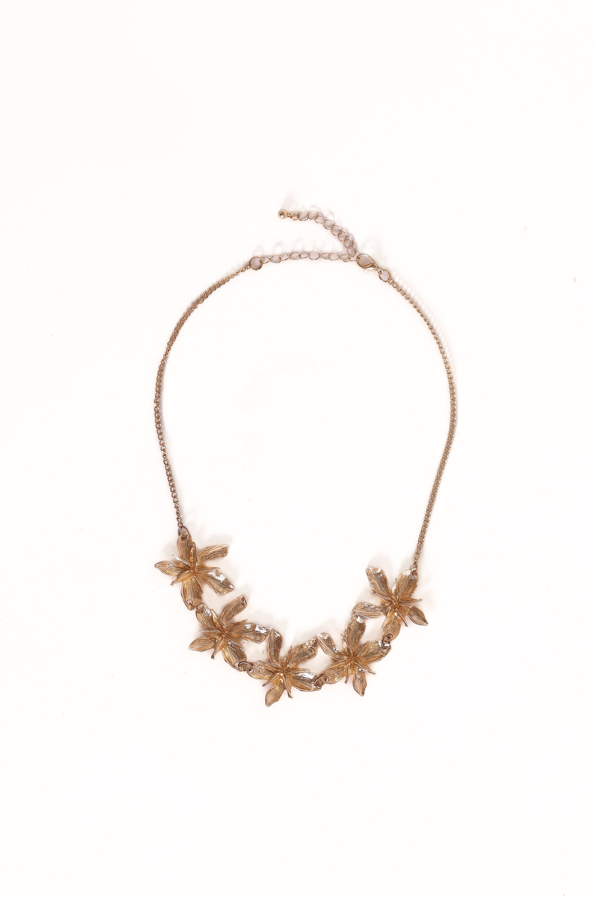 DETAILS Add a touch of timeless elegance to your look with the Deja Necklace in Gold. Featuring a delicate gold link chain adorned with five flower pendants, this piece is a perfect blend of subtle sophistication and modern charm.