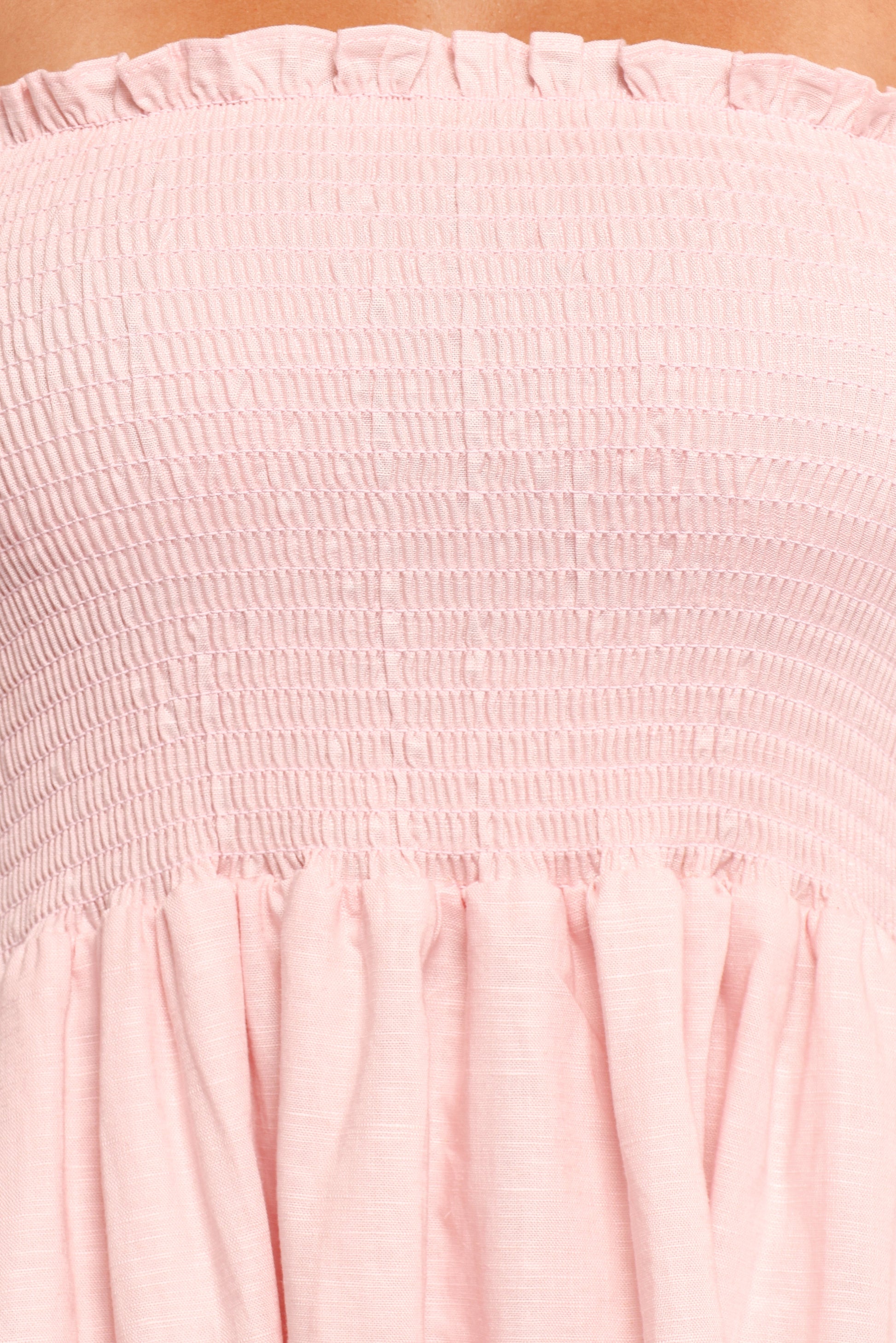 Domenica Shirred Long Sleeve Midi Dress - Pink