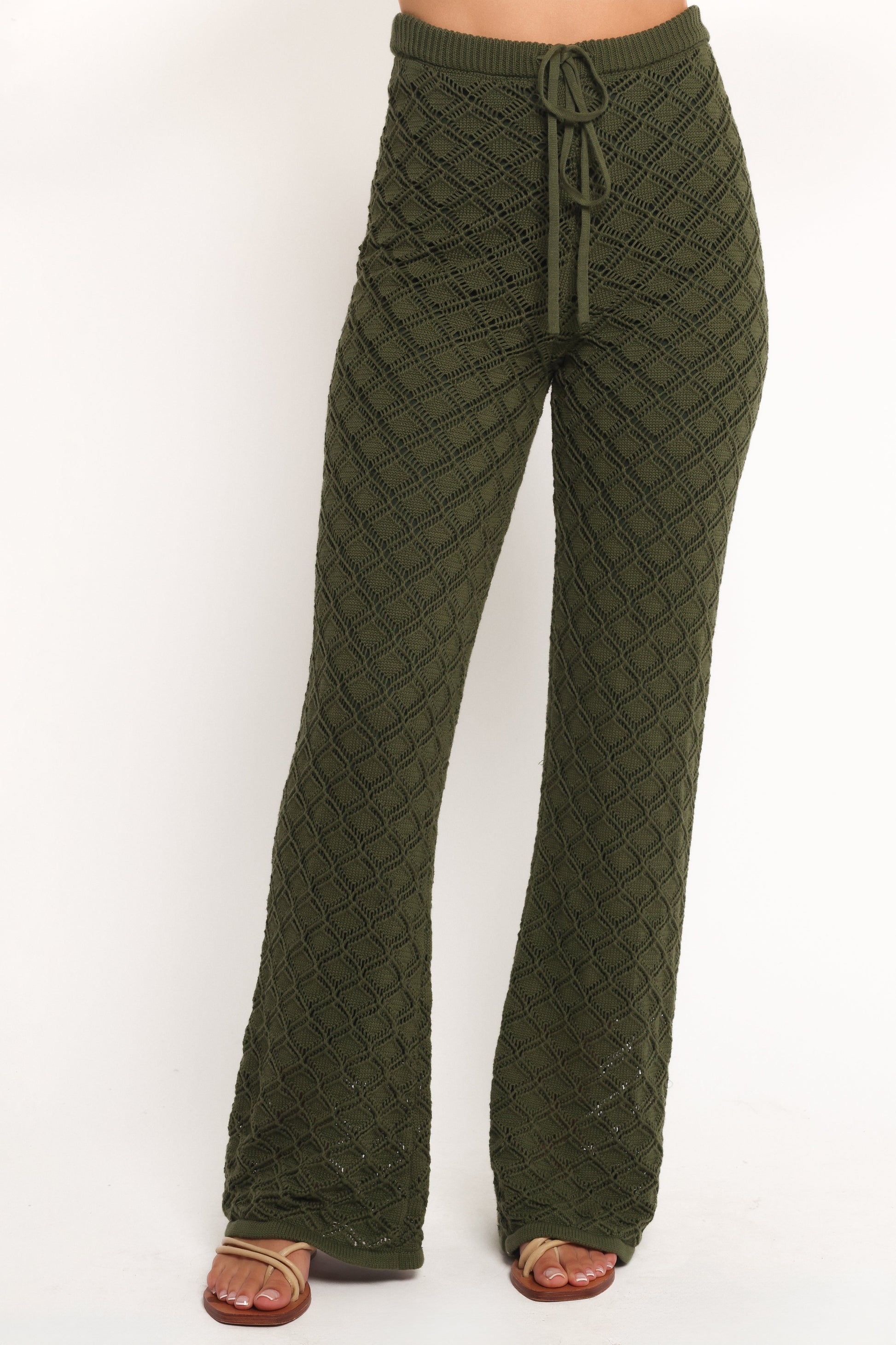 | DETAILS The Fefe Textured Knit Pants in Olive effortlessly blend comfort and style, perfect for the fashion-forward individual who values versatility. The wide-leg design not only elongates your silhouette but also adds a touch of modern sophistication to your ensemble.