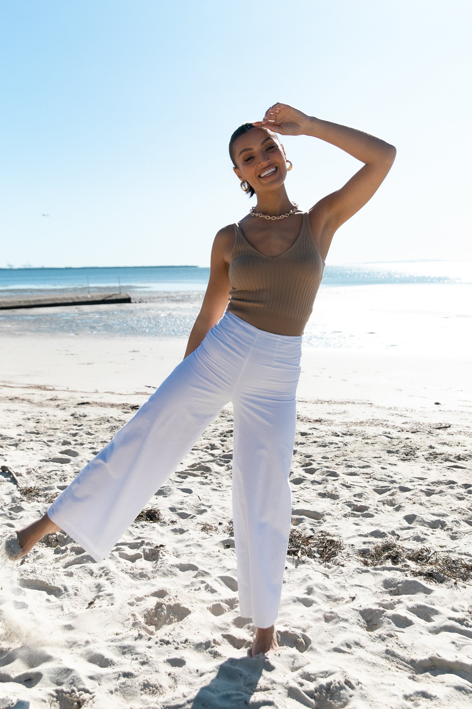 DETAILS This knit tank top is the perfect way to add a feminine touch to your everyday wardrobe. Featuring a V-neckline and non adjustable straps, you'll feel comfortably supported throughout the day. The soft stretch ribbed knit will keep you looking stylish from morning 'til night!