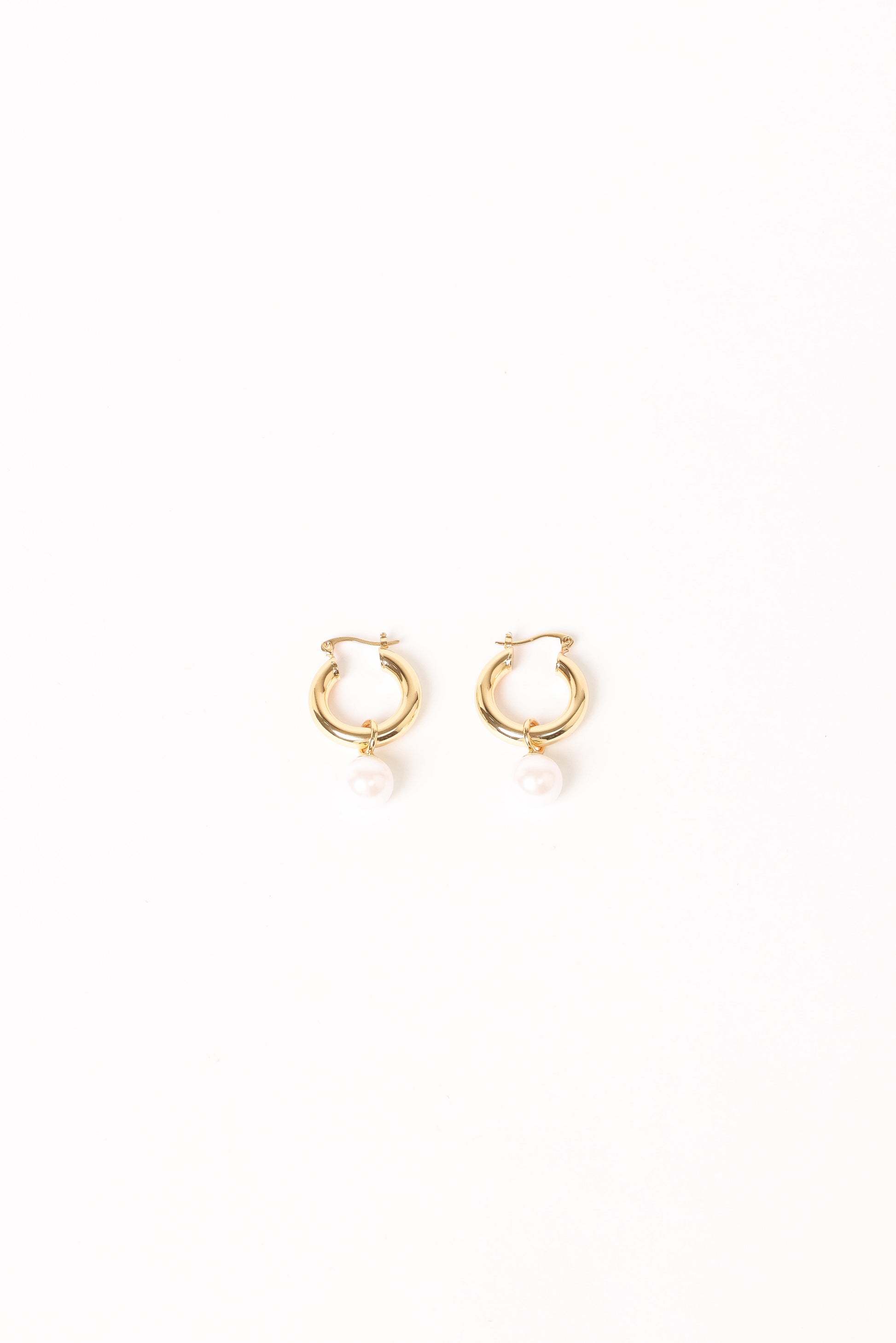 DETAILS Elevate your look with the timeless charm of the Geneva Earrings in Gold/Pearl. These hoop-style earrings combine sleek gold hardware with a delicate drop faux pearl, creating the perfect balance between modern trends and classic elegance.