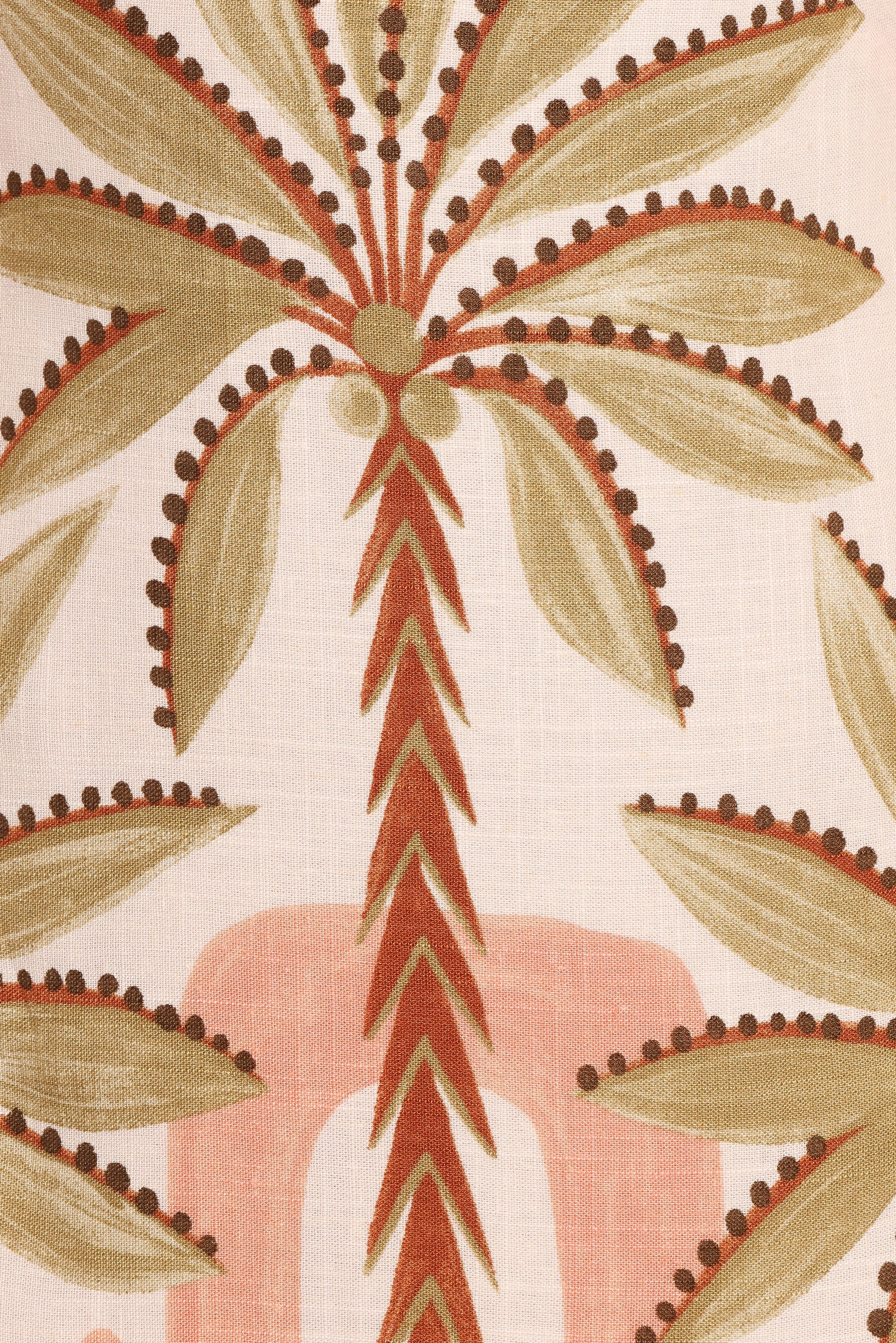 DETAILS Featuring a flattering v-neckline and tie-close shoulder straps, this design pairs easy comfort with playful sophistication. The breezy mini-length silhouette is perfect for warm days, while the subtle palm tree graphic print adds just the right touch of tropic-inspired charm.