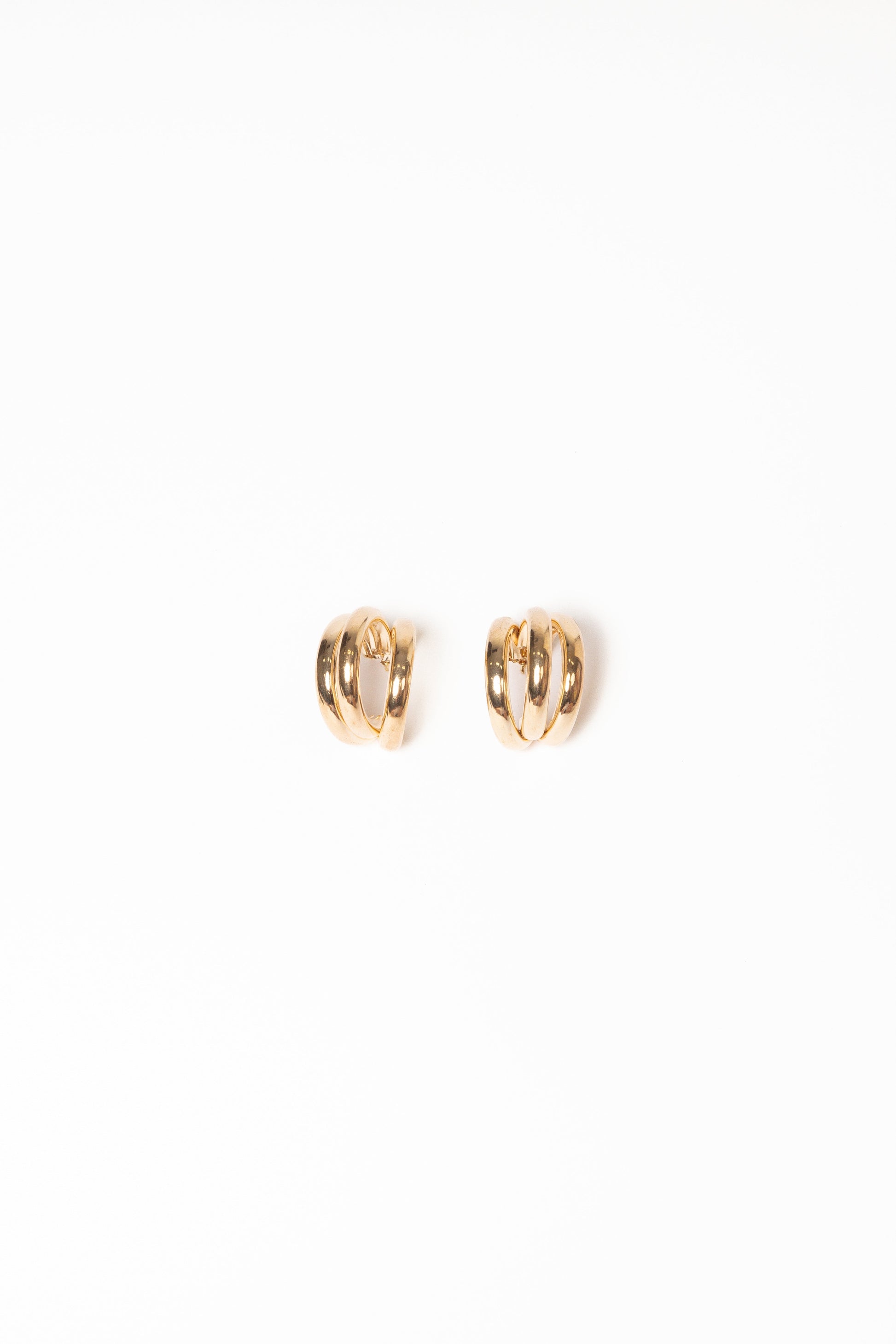 DETAILS Elevate your style with the Giulia Earrings in Gold, a versatile statement piece that effortlessly combines boldness and elegance. Featuring a modern triple-hoop design crafted from polished gold hardware, these earrings are perfect for adding dimension and shine to any outfit.