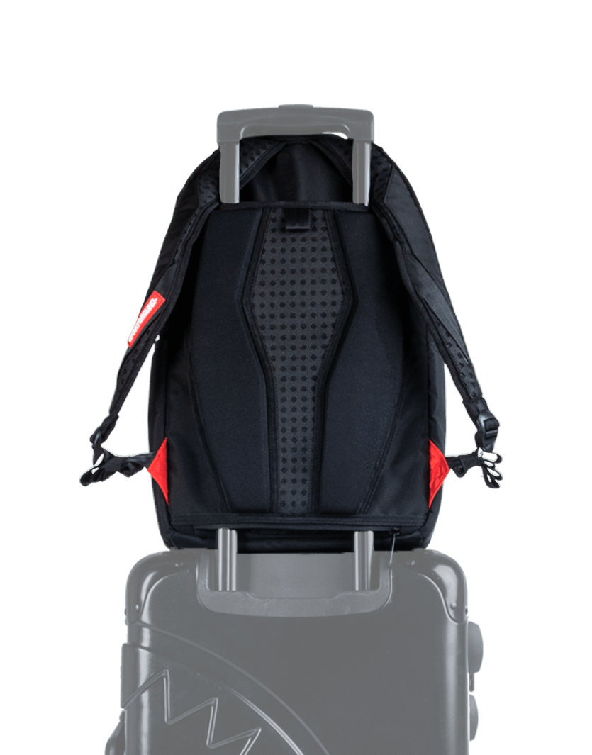 ExteriorDimensions: 18' x 6' x 11.5' • Front zipper pocket • Side pockets • Zippered Stash pocket • Ergonomic mesh back padding • Adjustable Straps for custom sizing • Nylon Zippers with Metal Hardware • Metal 'Sprayground Authentic' badge • Slide through back sleeve connects to Carry on luggage to free your hands