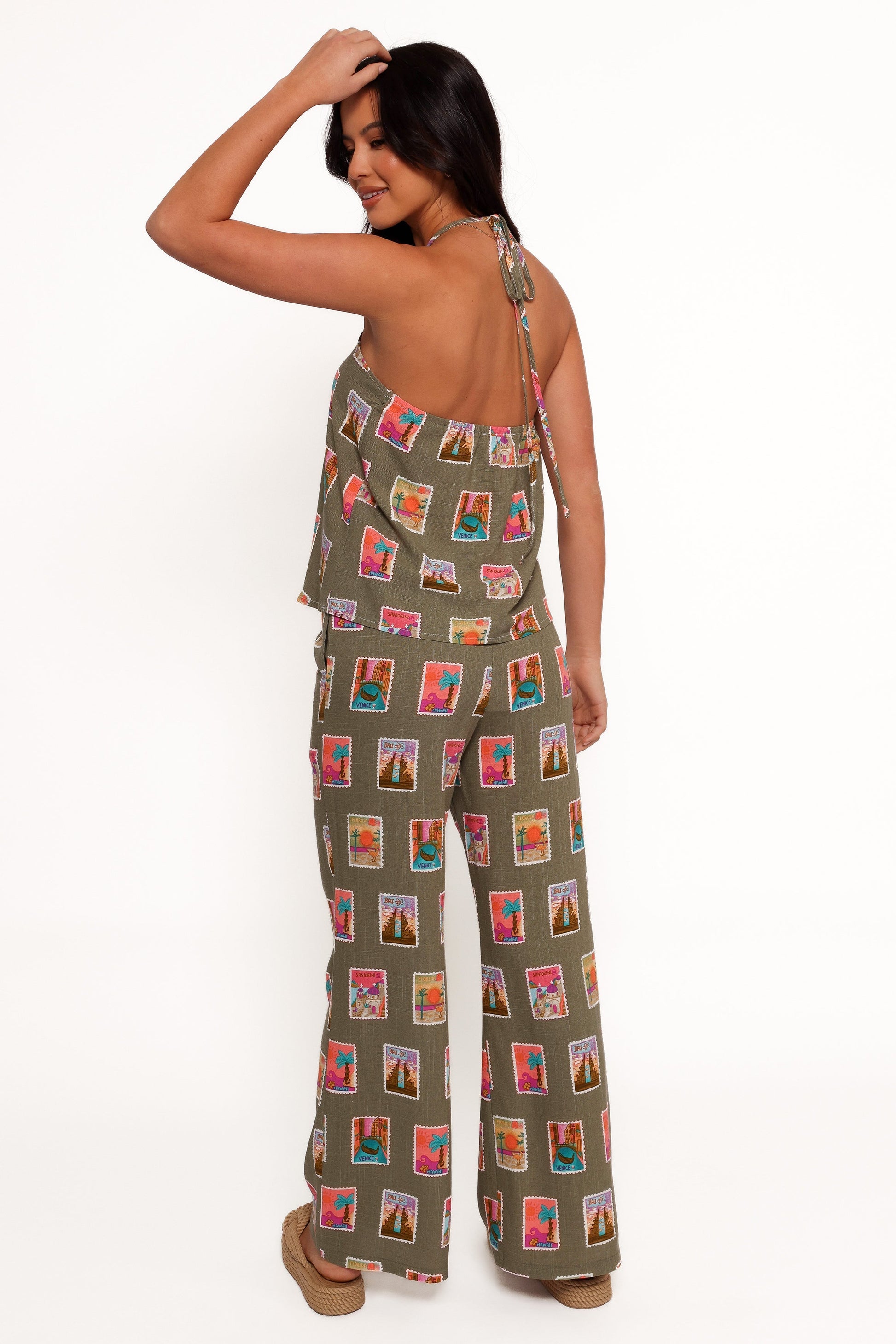 DETAILS Step into effortless style with the Hana Pants in Olive Print. Imagined for the modern trendsetter, these pants will become your go-to for any occasion. The straight-leg cut offers a timeless silhouette that flatters every figure while the high-waisted design accentuates your curves and provides a comfortable, secure fit.
