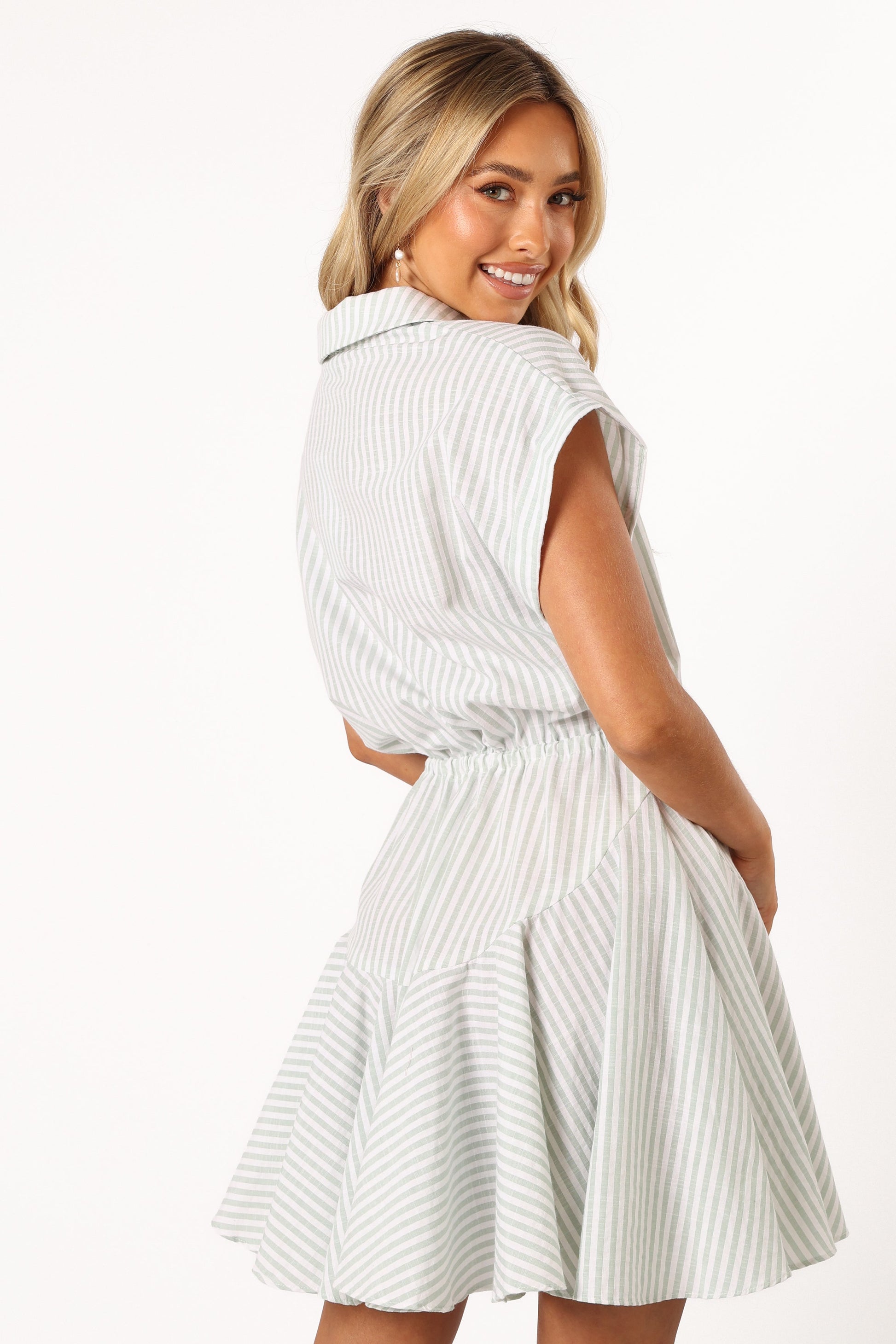 | DETAILS Dive into the trend pool with our mini dress featuring a fun V-neckline and cute rolled cuff short sleeves. The functional button-down front adds a touch of chic utility, while the drawstring waist cinches you in for that hourglass silhouette.