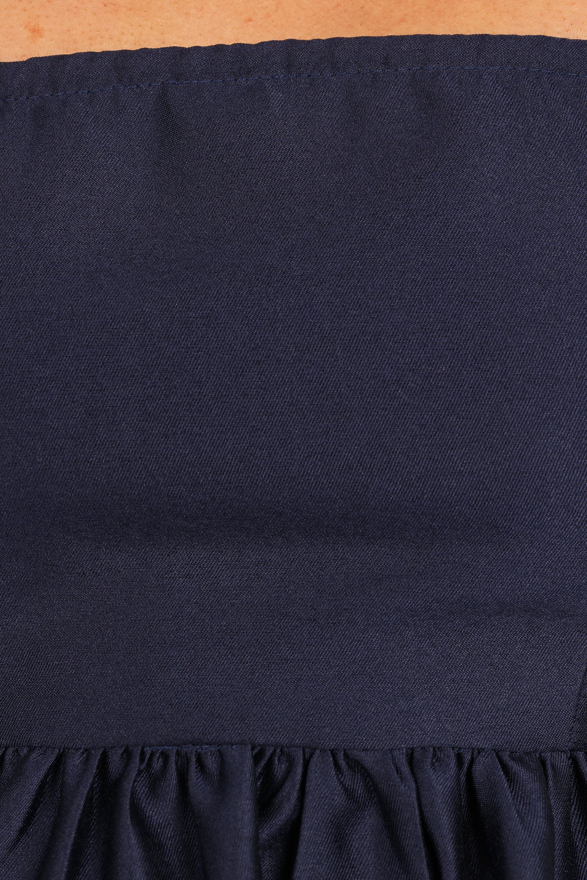 DETAILS This fun midi dress is sure to make heads turn. Featuring a straight neckline, adjustable shoulder straps and functional side pockets to keep your essentials secure. The back bow feature truly sets this dress apart.