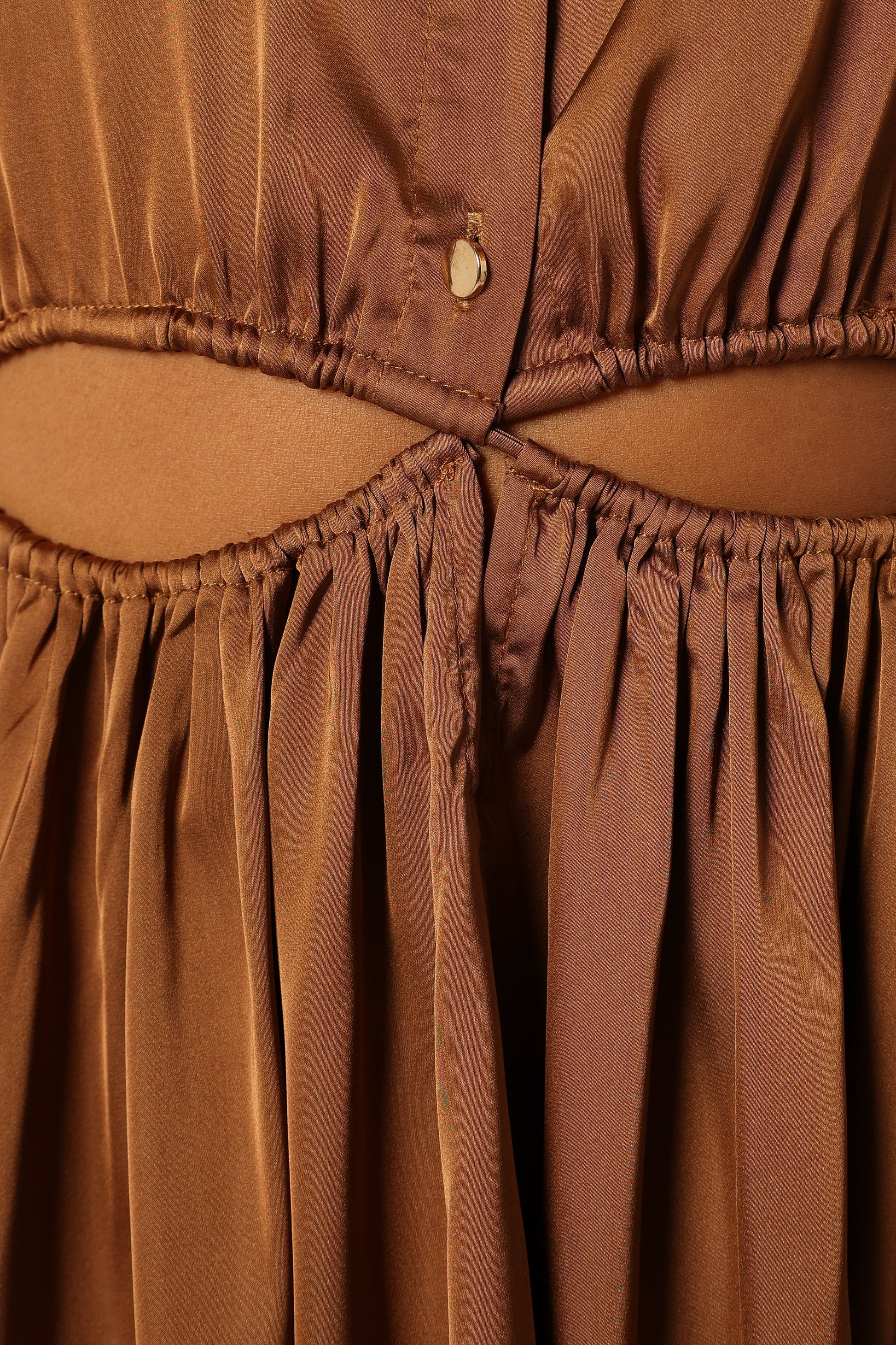 DETAILS This season, be fashion-forward and make sure all eyes are on you in our midi length dress. It features functional buttons down the front, as well as an on-trend cutout feature and elasticised waist at the back.