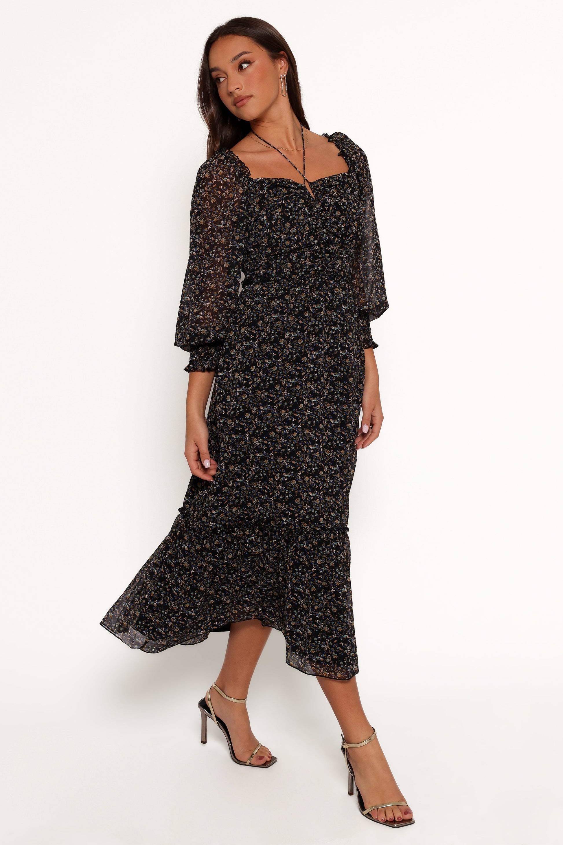 Keziah Long Sleeve Maxi Dress - Navy Ditsy Floral