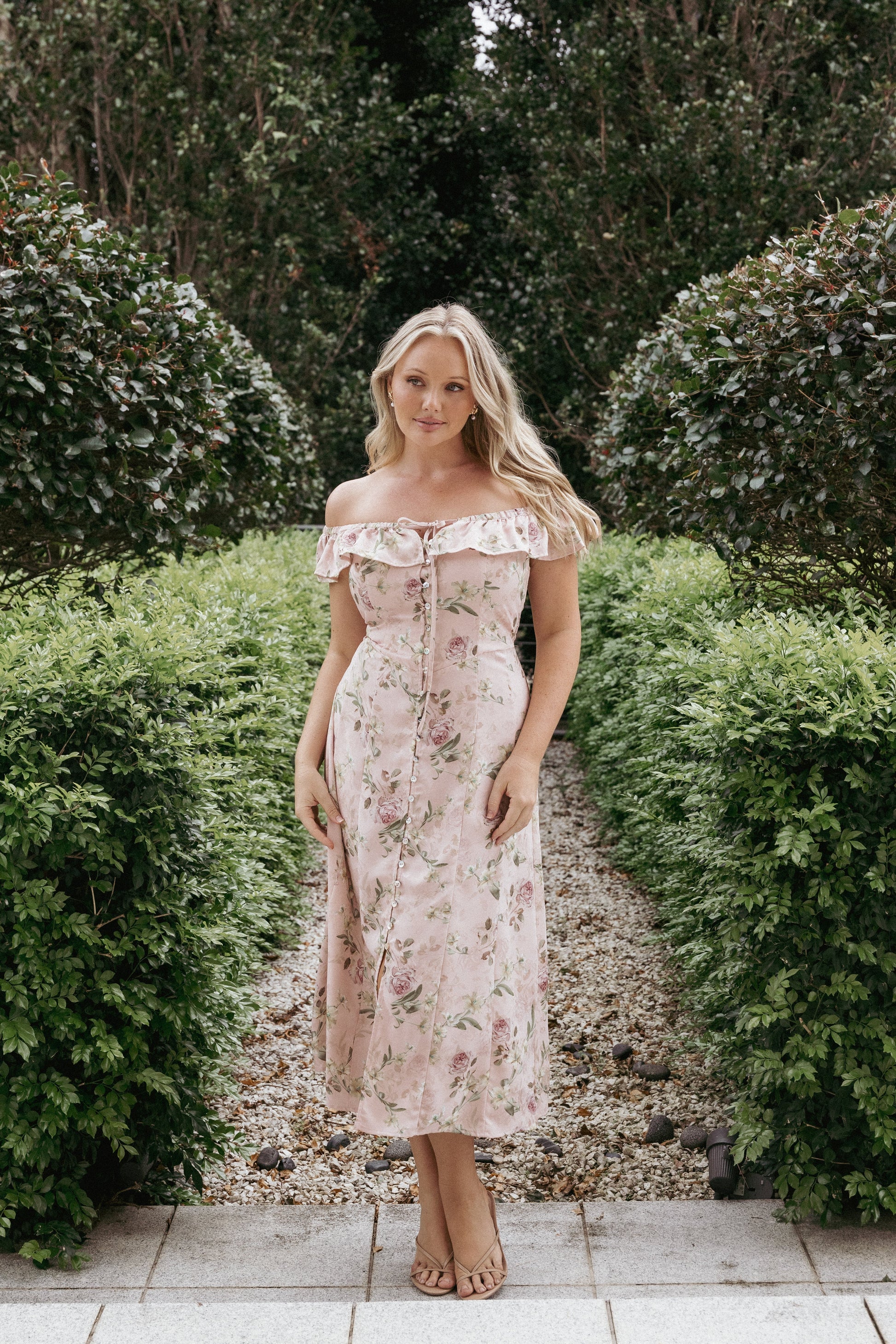 Lauryn Off The Shoulder Midi Dress - Blush Rose