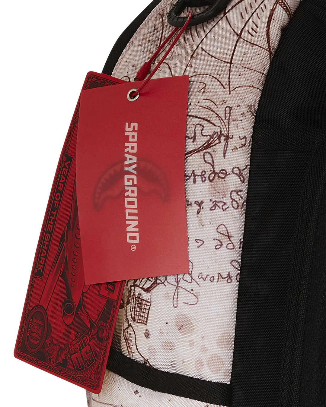 Dimensions: 18' x 6' x 11.5' • Front zipper pocket • Side pockets • Zippered Stash pocket • Separate velour sunglass compartment • Ergonomic mesh back padding • Adjustable Straps for custom sizing • Gold zippers with metal hardware • Metal 'Sprayground Authentic' badge • Slide through back sleeve connects to carry-on luggage to free your hands