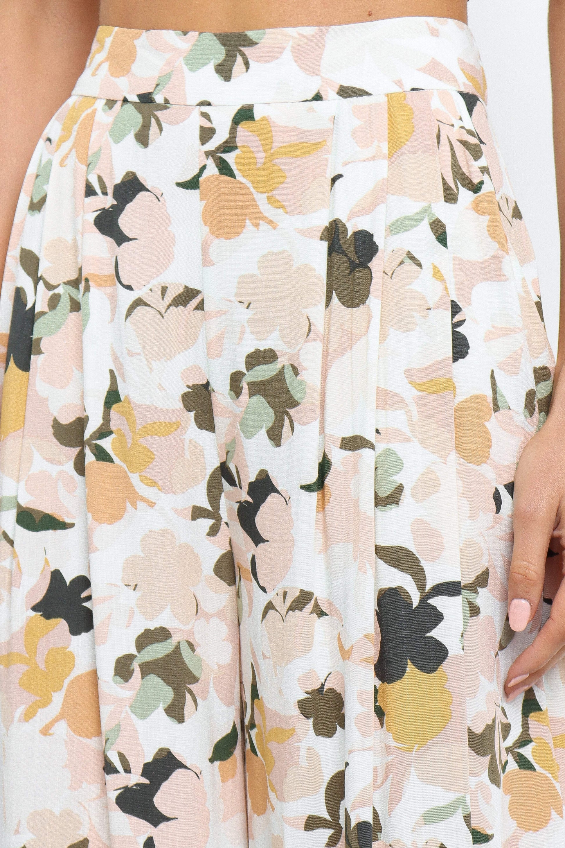 DETAILS Looking for pants that make a statement? Look no further than these high waisted wide leg pants! Made with side pockets and an invisible zip at back, these pants are not only stylish but also functional. The floral print adds a fun, feminine touch perfect to spice up any outfit.